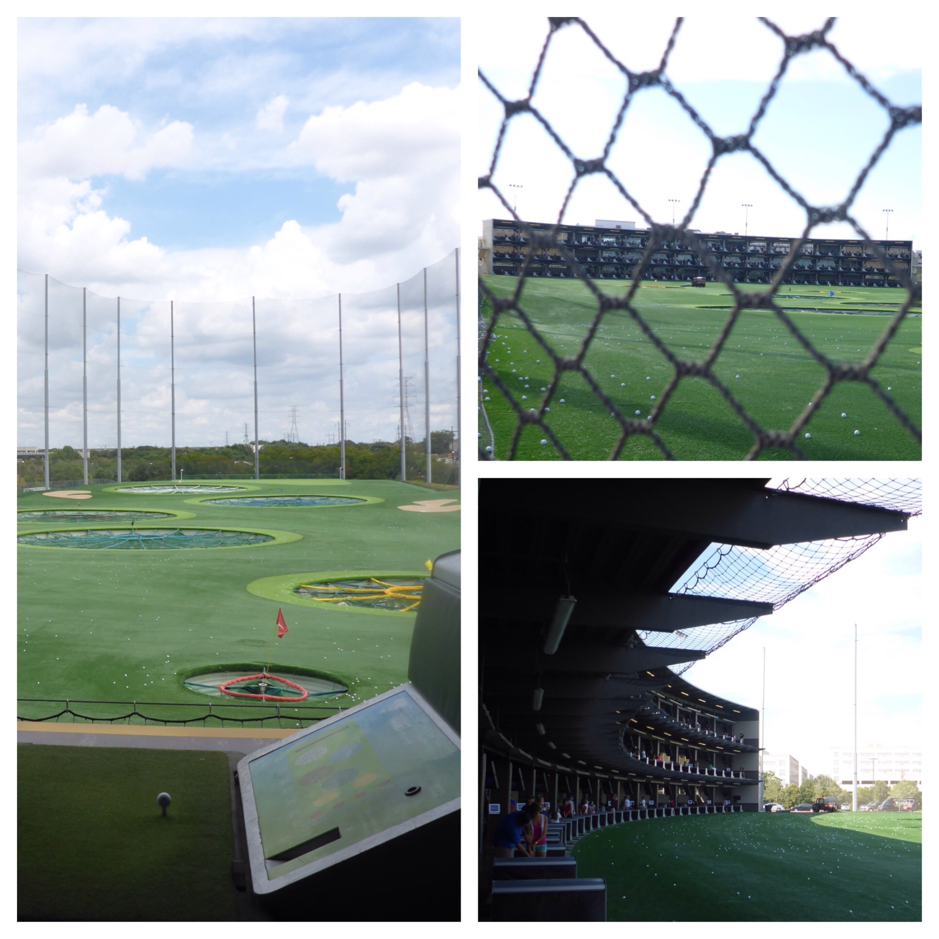 My friend celebrated his Birthday today at Top Golf in Austin. I crammed three photos into a collage – one from a bay on the second floor, one that shows how the bays wrap around and one from the back fence of the facility. This is a fun place to visit if you like to whack golf balls into targets.