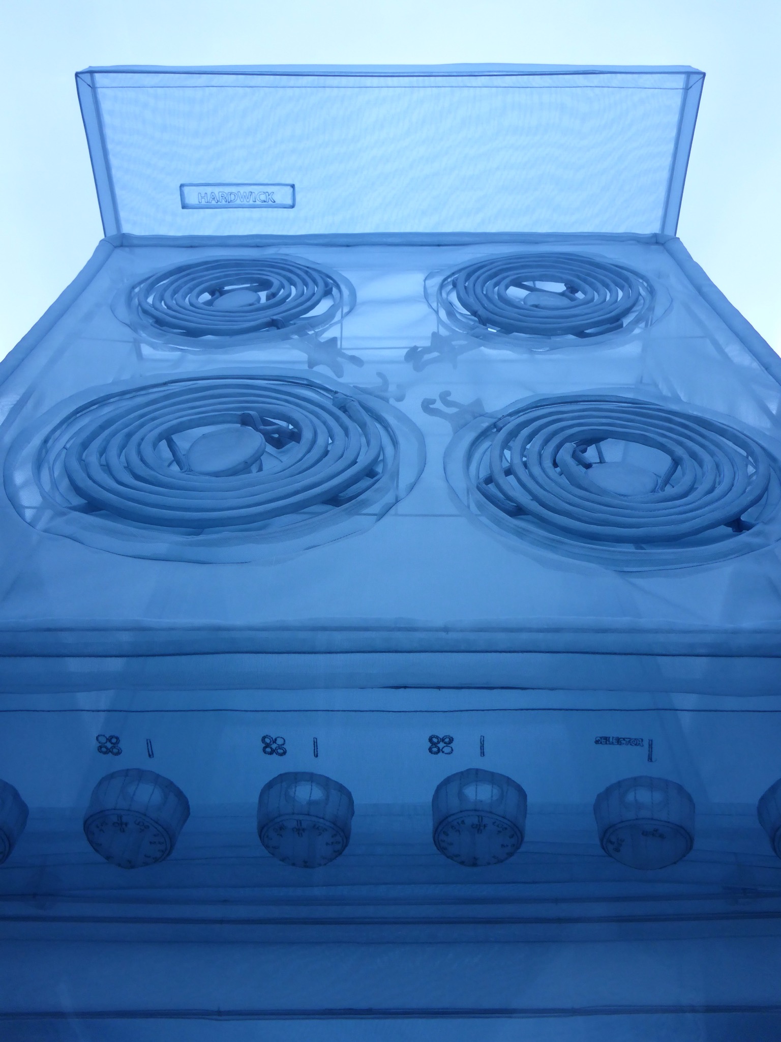 The artist, Do Ho Suh , has created several pieces, but the standout item is his “series of rooms and passageways from Suh’s 348 West 22nd Street apartment complex and studio where he lived in New York City”. This is made of polyester fabric, stainless steel tubes and stainless steel wire. Pretty cool.