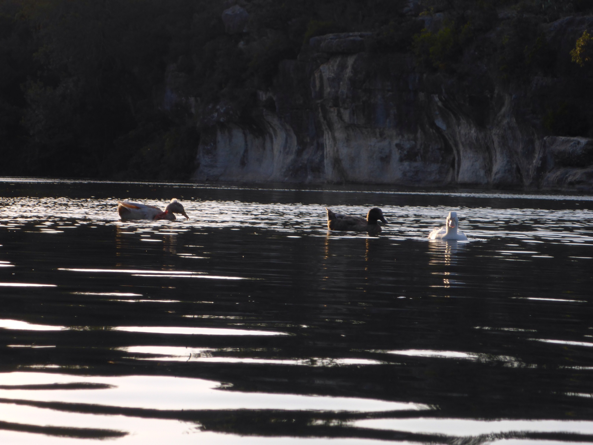Georgetown has a nice swimming hole called Blue Hole that is close to Downtown. It is a good picnic spot. I caught these three ducks enjoying the cool water this evening.