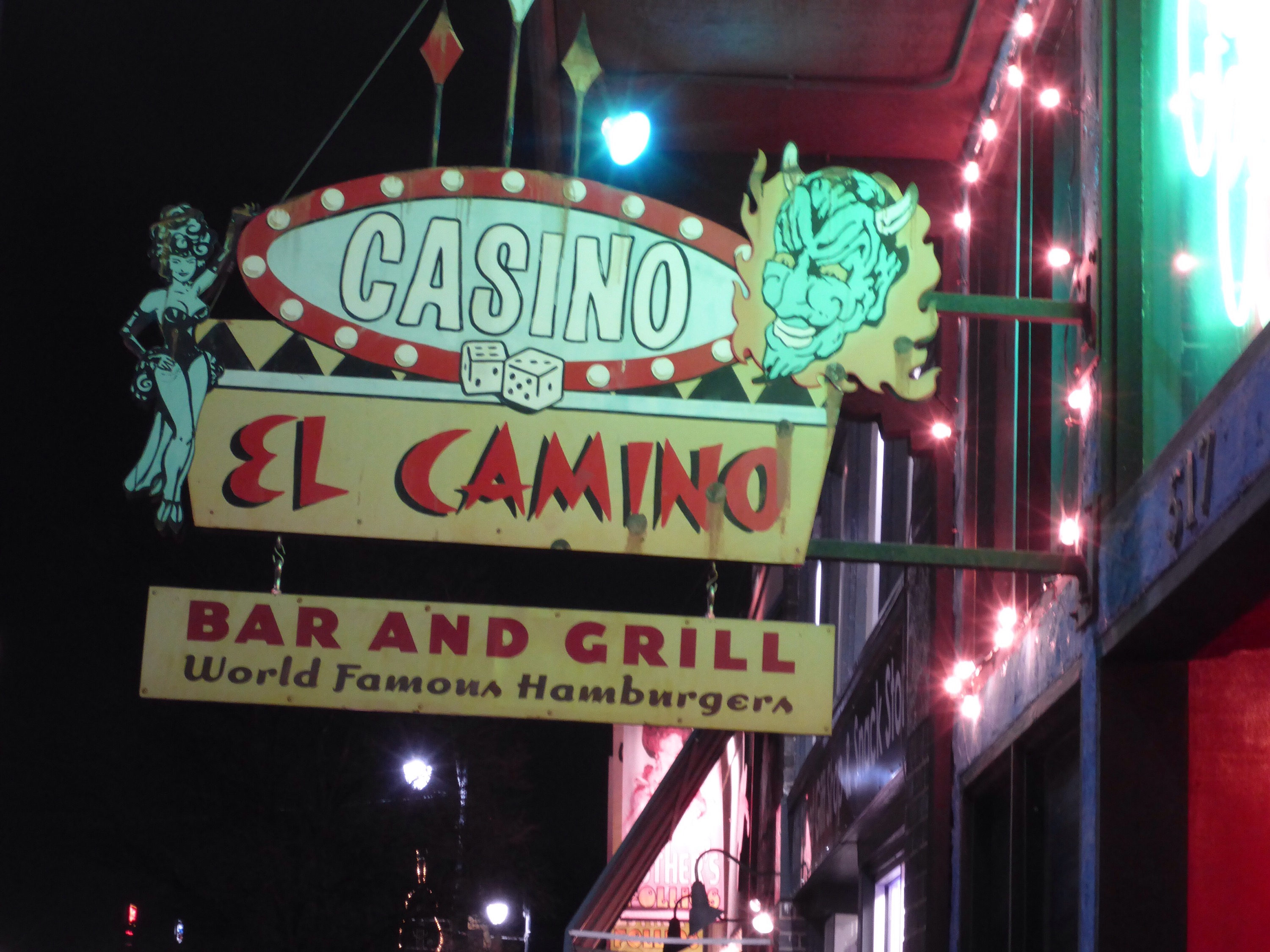 Happy New Year Internet Friends! I am going to bring in the New Year in Downtown Austin and I needed some food to help me make it through the night. A hearty burger from Casino el Camino did the trick. This place on Sixth Street is both a bar and it has a small, but awesome, kitchen in the back. There is eclectic art on the walls, a patio for hanging out, the best jukebox, and an upstairs area for relaxing and chatting. I ordered the Chicago Burger – bacon, romaine lettuce, tomato and cheddar cheese. Totally yummy! Secret Tip – When you order your food, don’t give them your real name, because when it is ready, they will call you over the loudspeaker in a fun way. It’s best to make them call out something funky to entertain the whole bar. 🙂