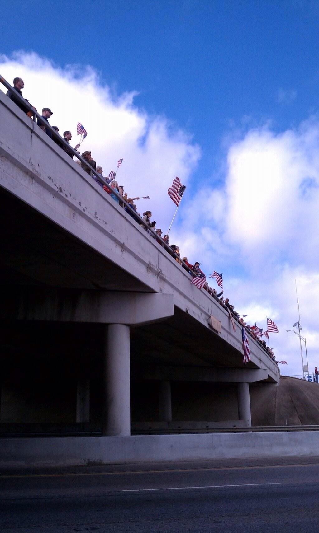 This is a photo from my cell phone taken on February 12, 2013 from when a friend and I pulled over to the side of the road on Interstate 35. That sunny afternoon there was a funeral procession stretching over 200 miles and ending at the Texas State Cemetery in Austin. After this photo, we left the car, climbed up the embankment, and joined the people on the bridge to honor the service and life of Chris Kyle. The atmosphere was somehow both solemn and celebratory. How amazing to be a part of this, and later in life to see the movie about Chris’ life and service as a Navy Seal. Clint Eastwood did an outstanding job as the Director of this film, and Bradley Cooper is most excellent.