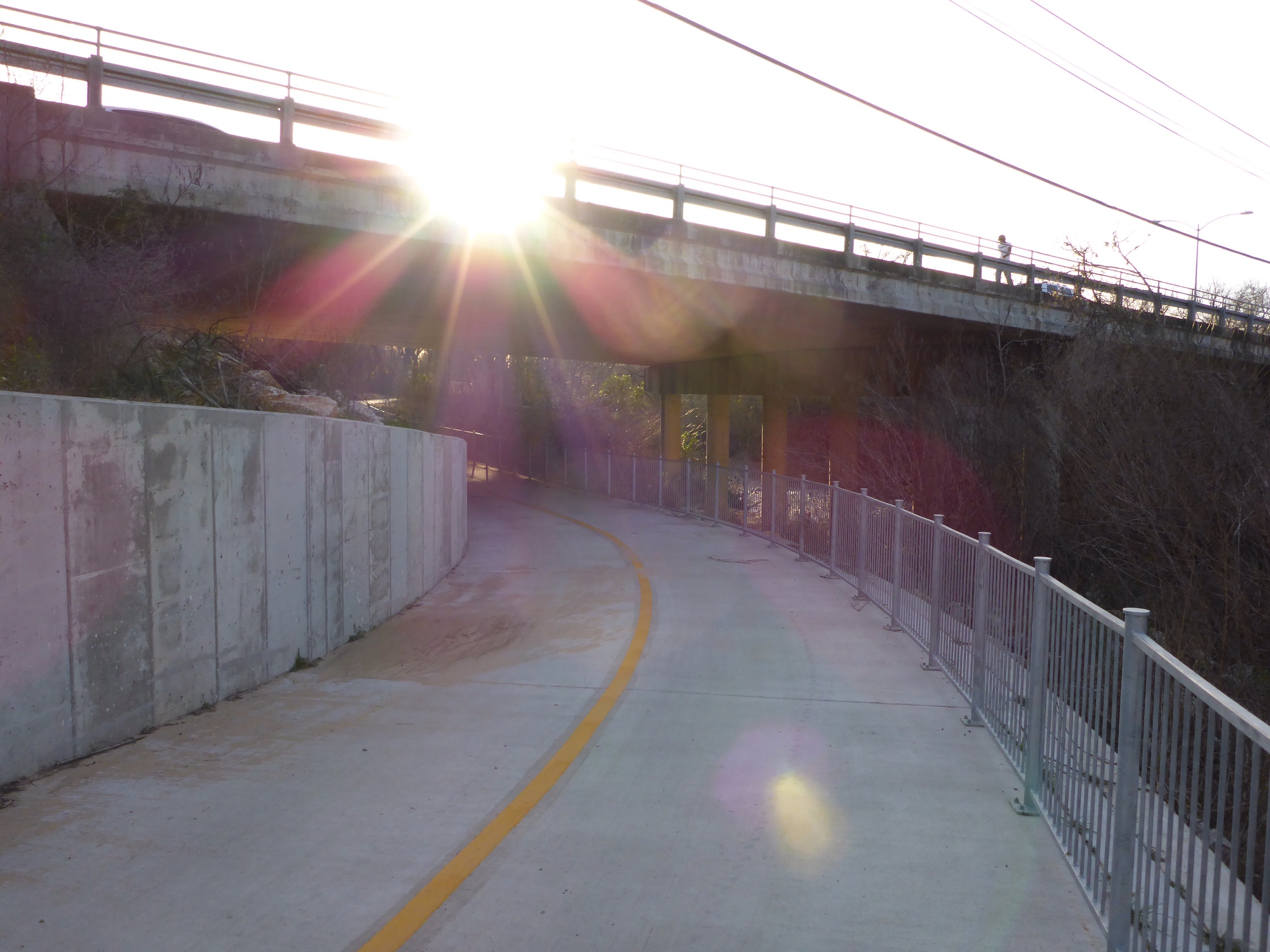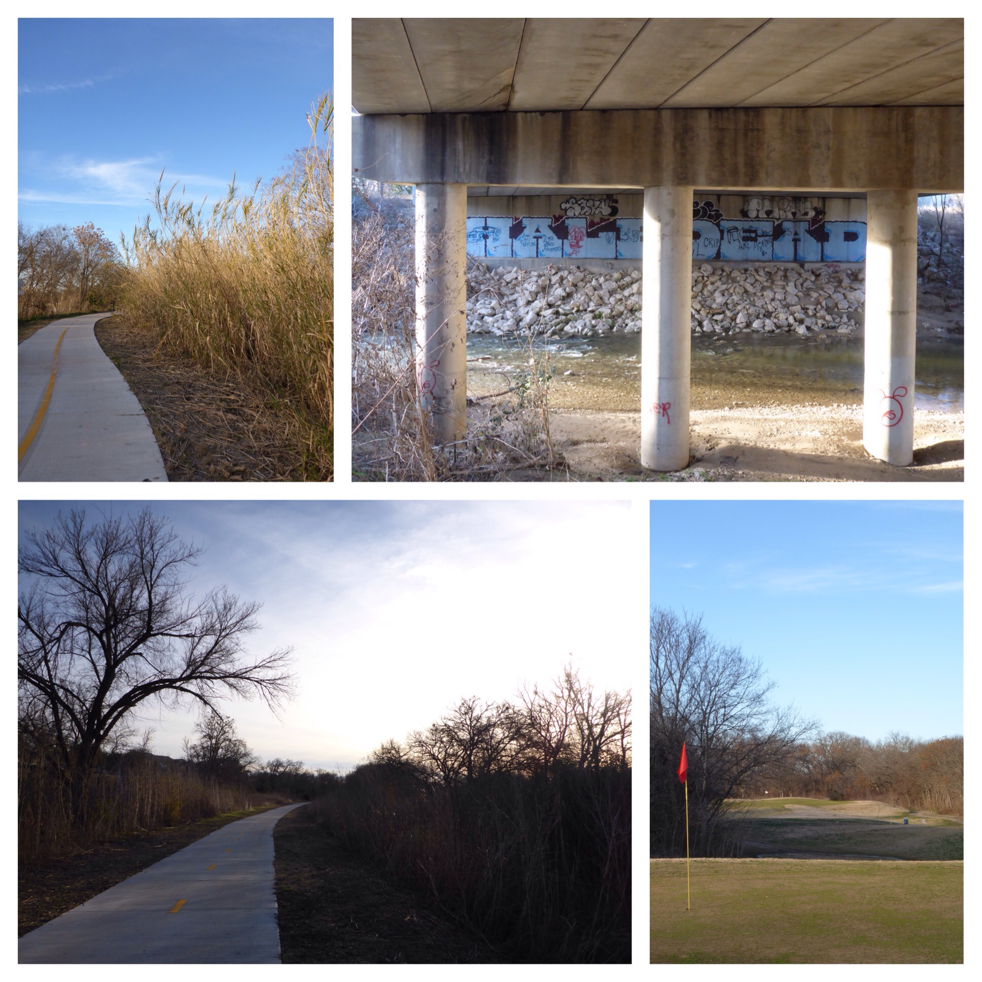 At sunset, it was time to work off my overconsumption of meat pies, and go for a long walk along the Walnut Creek Hike and Bike Trail. The section I walked had sights like a golf course, Walnut Creek, flooded trail sections, bridge underpasses, graffiti, winter trees, bamboo, dried brush, and plenty of bikers, hikers and dogs. It was a pleasant walk, and I will have to explore this trail further when I have the opportunity.