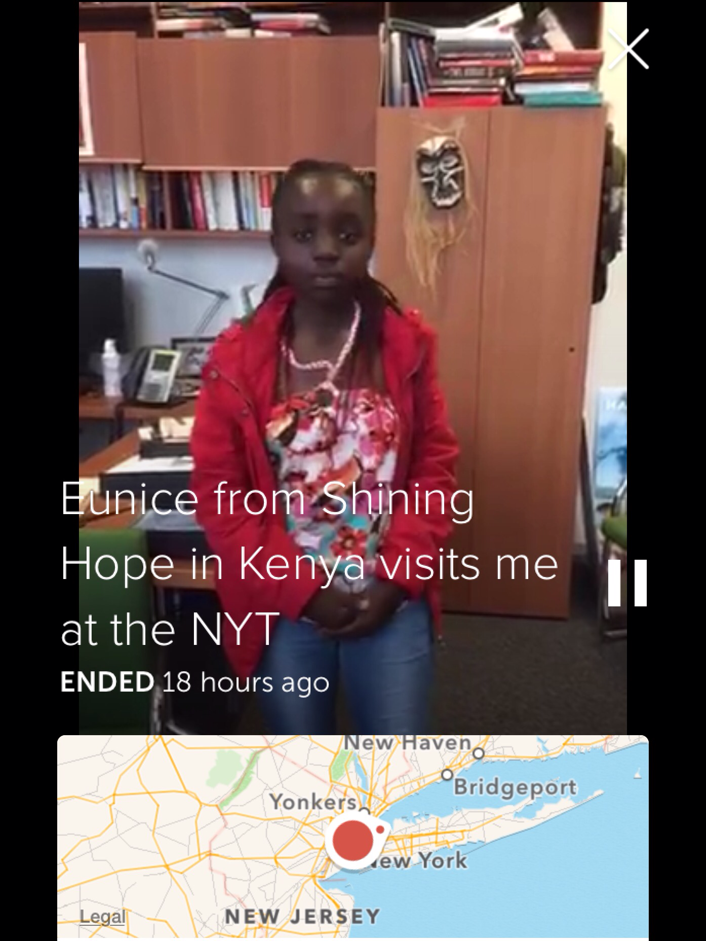 Yes, my Periscope addiction is ongoing. So now on the Periscope App where you can see the videos from individuals you are following, the Periscope people have begun posting recommended videos that remain for viewing for about 24 hours. I watched one of the best this morning. It was from journalist Nick Kristof, who had invited Eunice Akoth (a sixth grade student from the settlement of Kibera in Kenya, Africa) to visit him in New York. The short, live video showed a brief interview and a performance of a poem by Eunice. The poem is extremely moving, and can be found here along with several other stories about day to day life in Kibera. Kibera is Africa’s largest slum where daily challenges can include basic needs like food, water, and shelter. Shining Hope for Communities is an organization working to help this settlement, and their mission statement can be seen below in a screenshot from their website. At the very least, you should check out the poem from Eunice. If you are like me, it will inspire you to learn more about her story and the people who have reached out to assist her and the community she lives in.