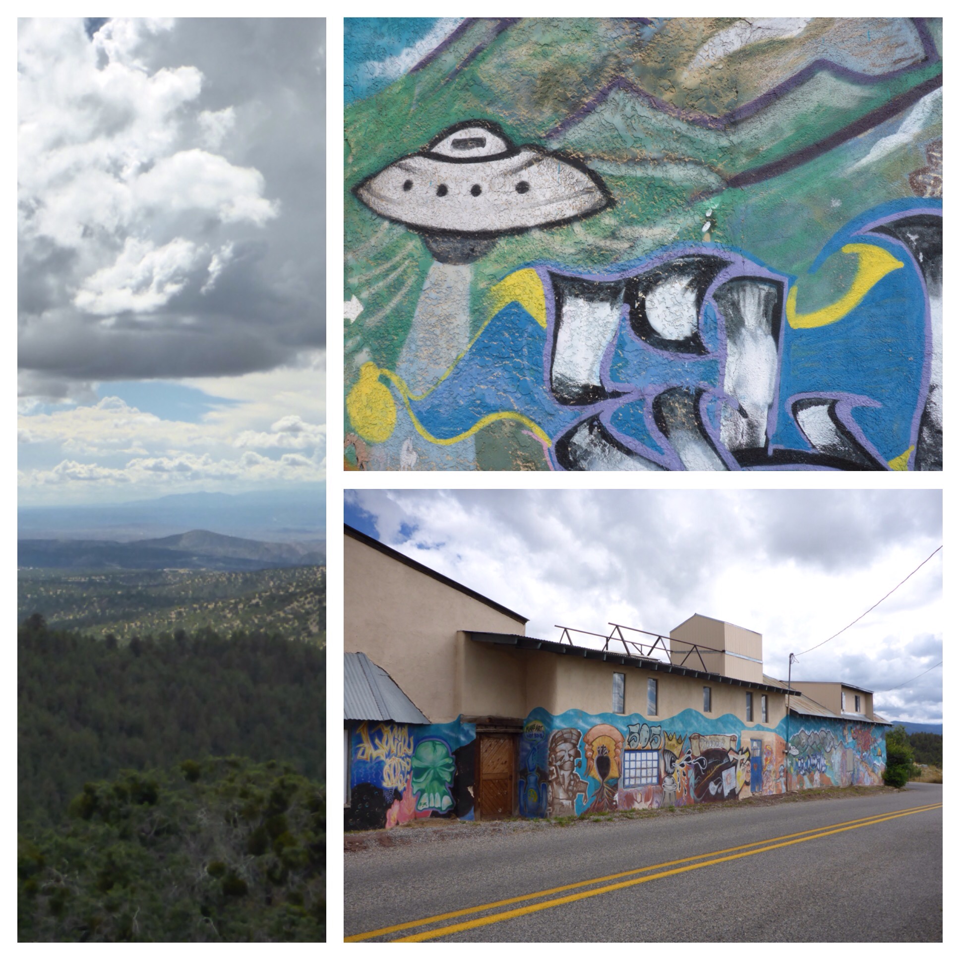 There is a magical little town on the scenic High Road to Taos called Truchas. It has one of the best views in the area – one so beautiful that it is near impossible to capture with a camera. If you go straight where Highway 76 bends towards Taos, you will make your way along a narrow paved road filled with small homes and farms. If you turn at the bend, you will find a wall of graffiti to include a spaceship and other painted arts.