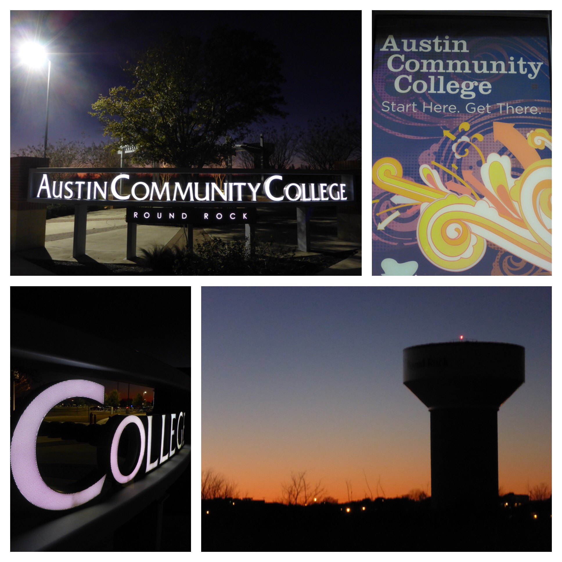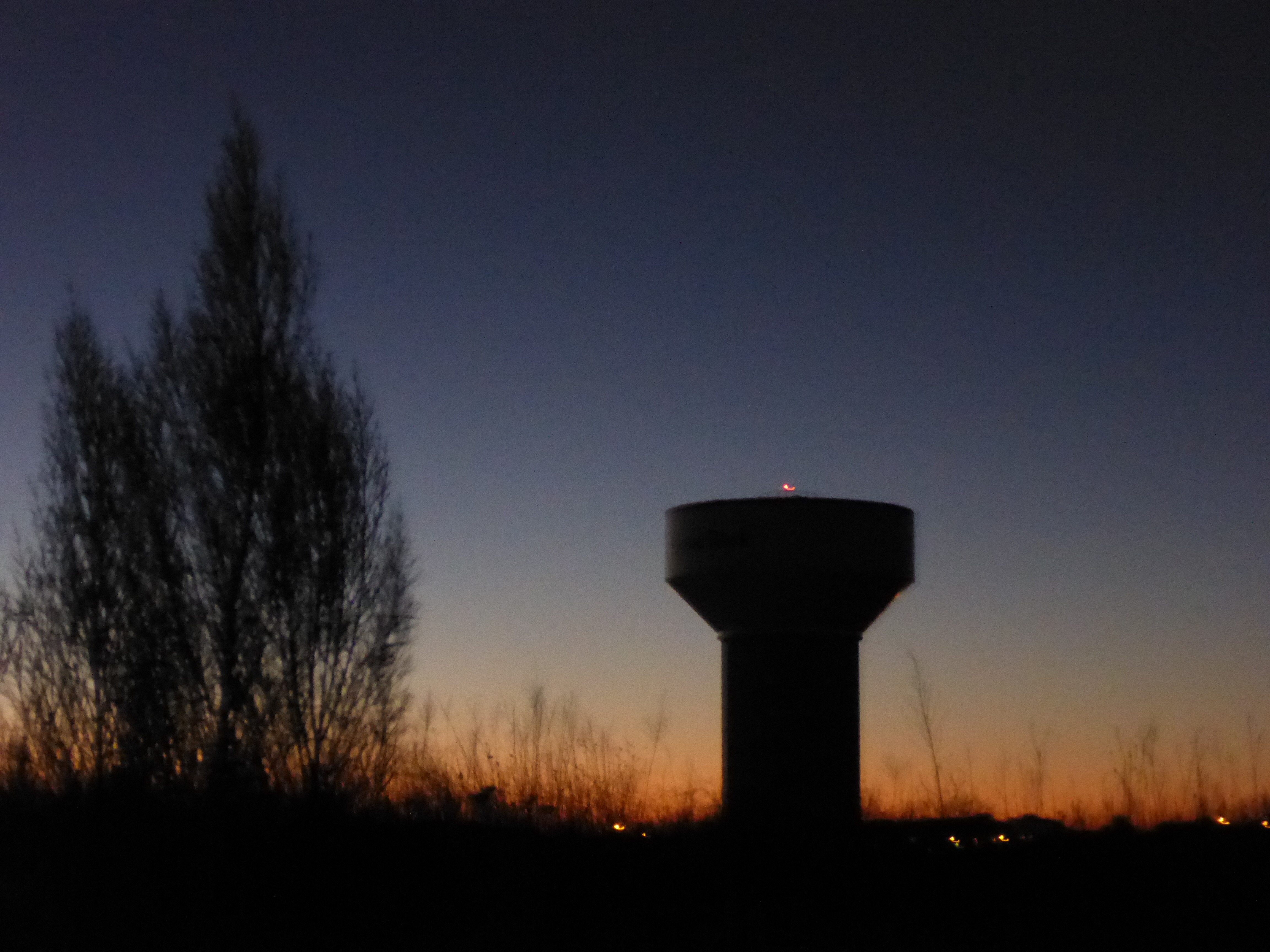 I took a short walk around Austin Community College in Round Rock before it got too cold and too dark. The water tower caught my attention at dusk.
