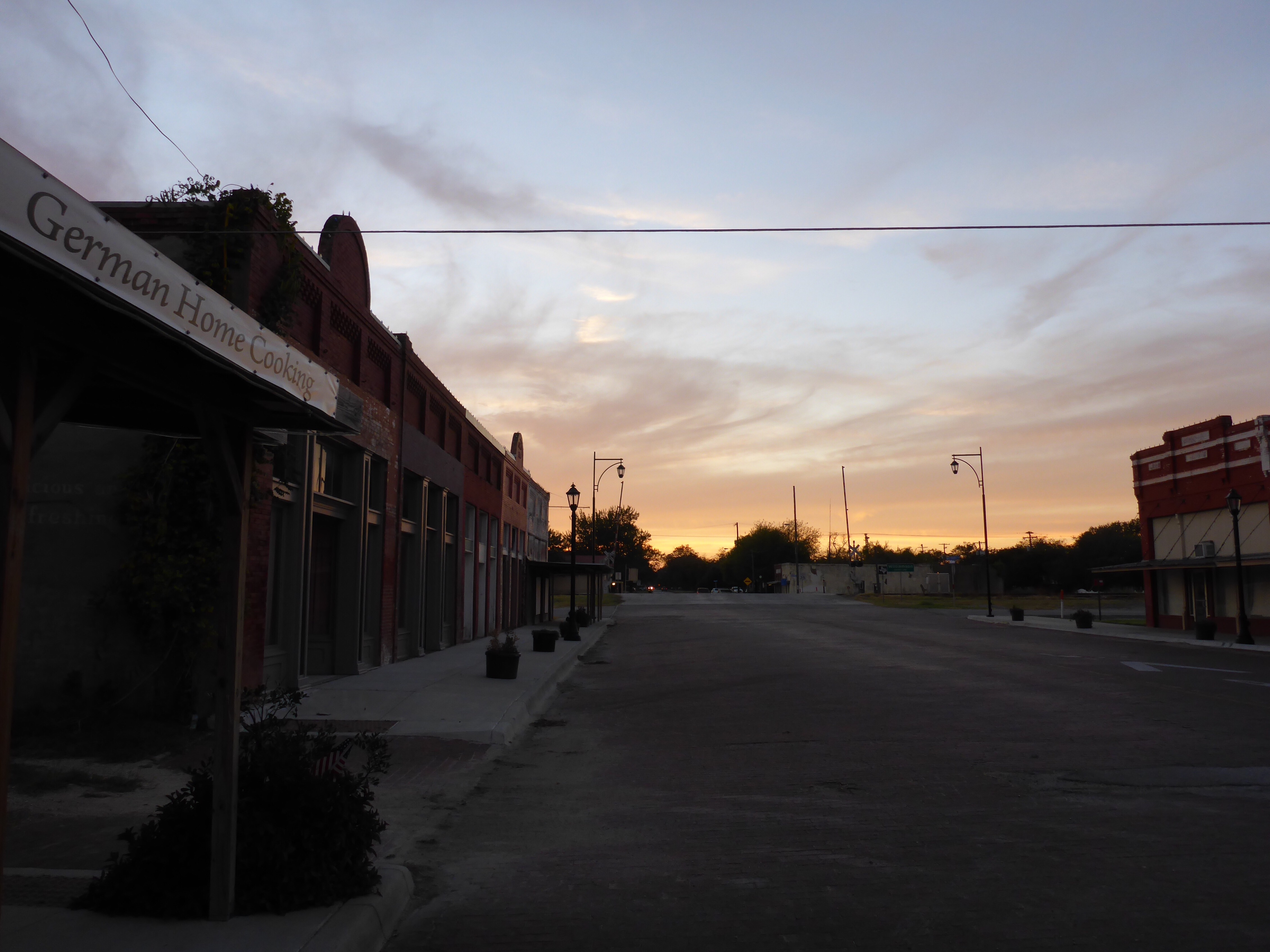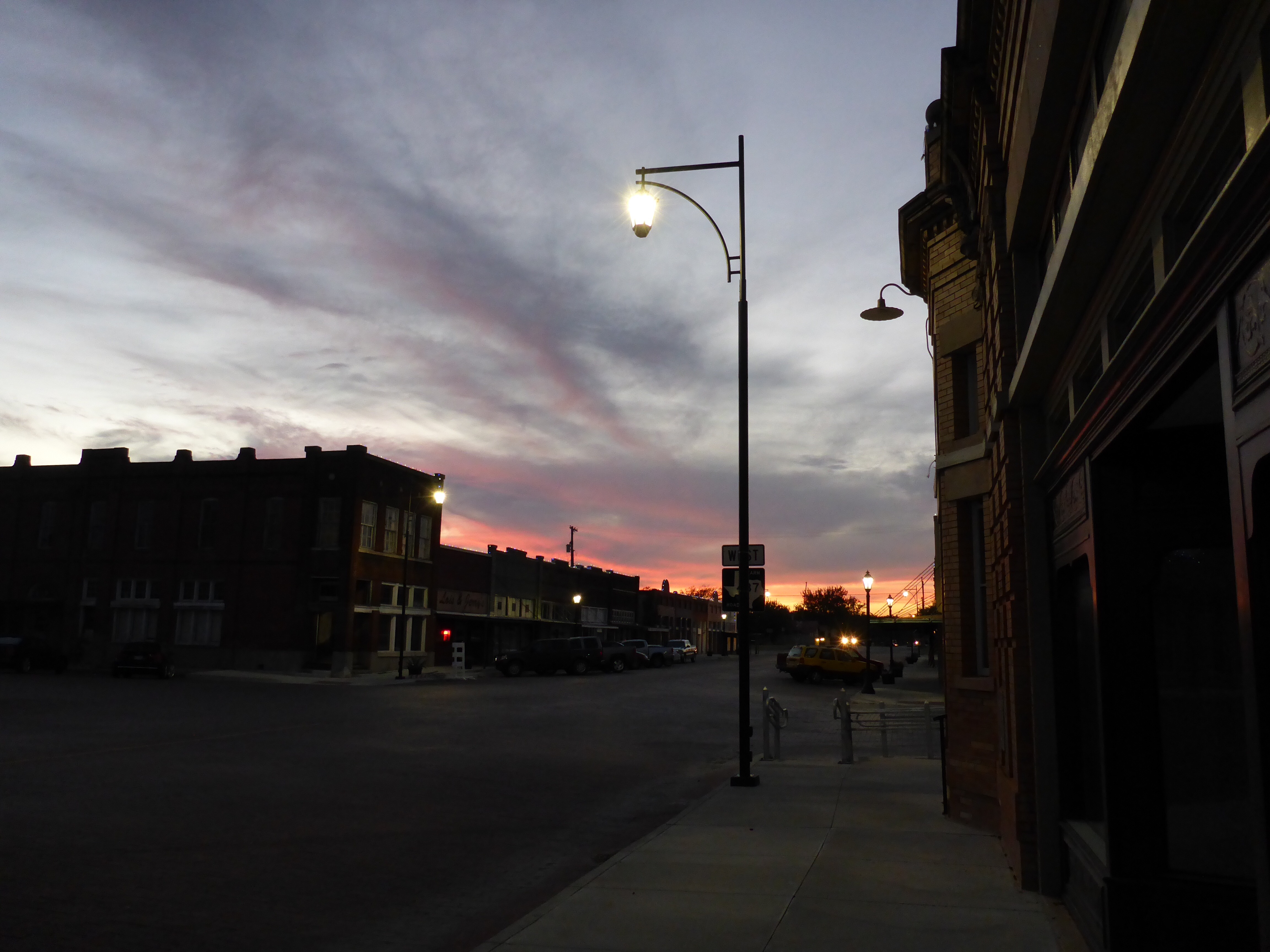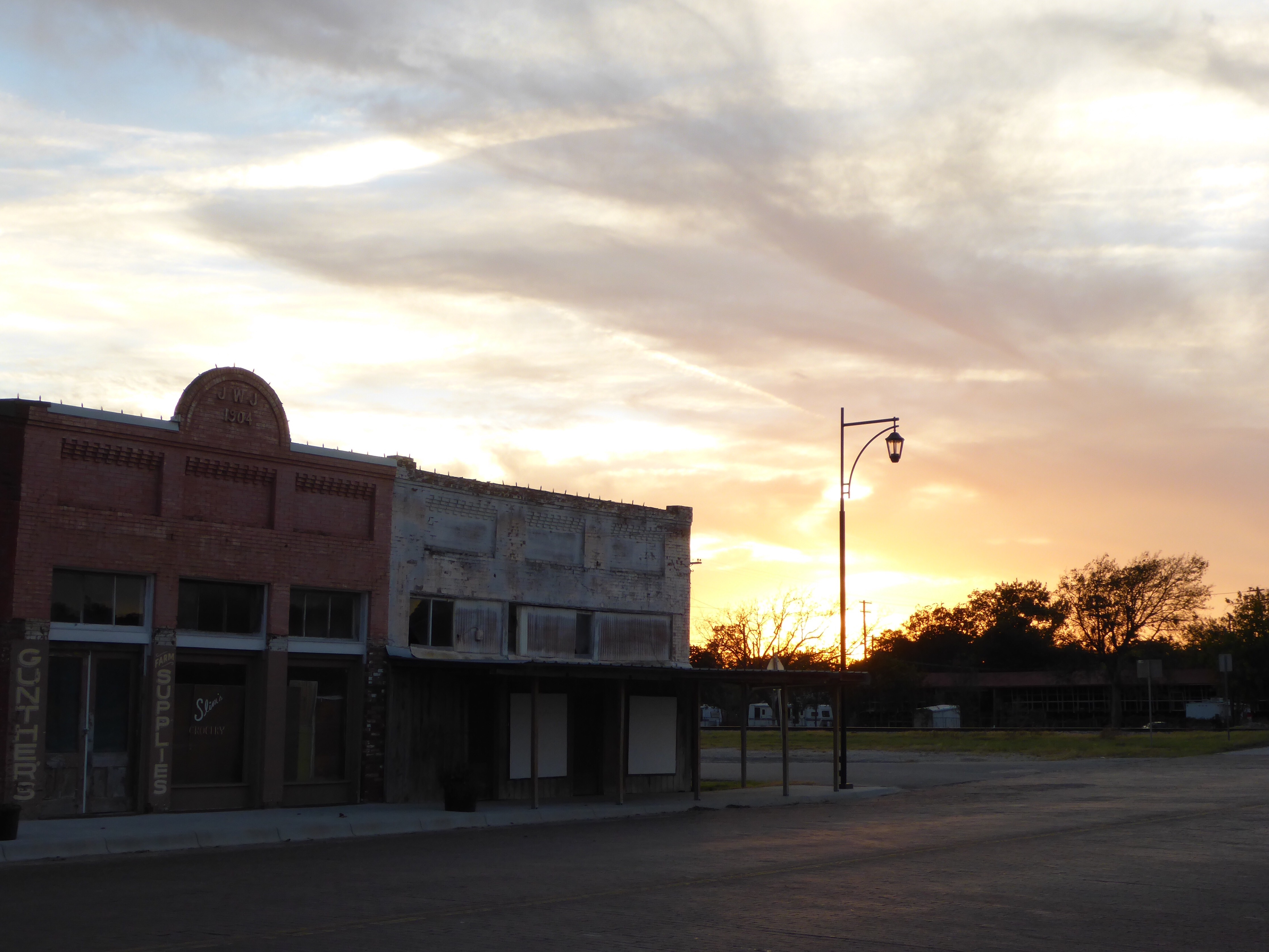 It is a relatively cool evening as the sun begins to set in Bartlett Texas.  The town is mostly vacant, except for a few cars and trucks.  Most of the shops have been boarded up with the exception of a couple of restaurants and antique stores.  People have purchased or leased some of the downtown buildings to serve as their homes.  The brick paved streets speak of another time.  The town’s history indicates wealth from the cotton and railroad industries.  Come and see some of the sights as I walk through this unique and interesting town.