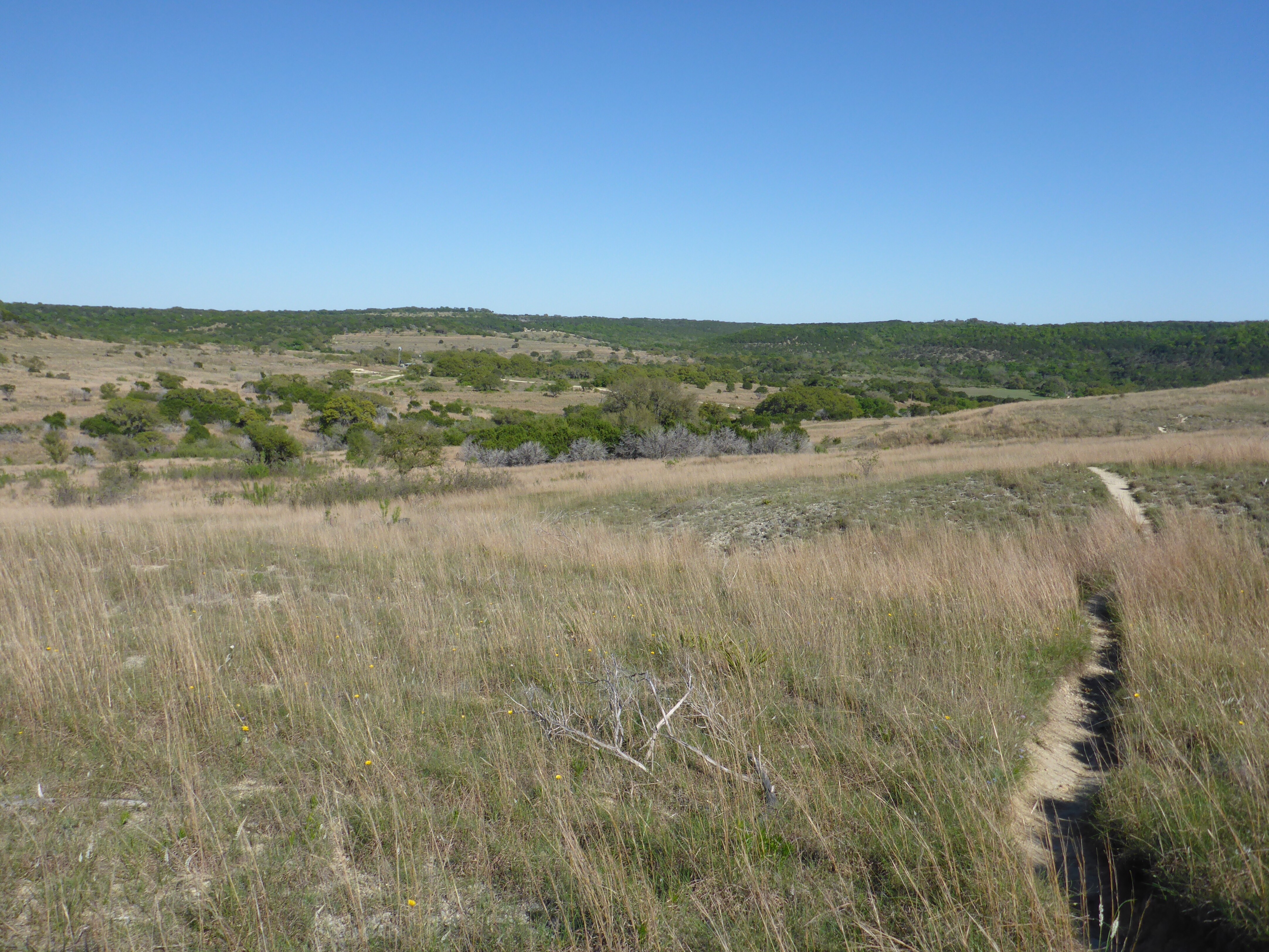 If you are looking for a relatively easy and sunny hike just outside of Austin, Doeskin Ranch in the Balcones Canyonlands Natural Wildlife Refuge is a good spot. The three main trails form a loop that is about 3.5 miles long. At this time of year you will find a clear stream to cross, rolling hills to climb, and plenty of wildflowers to enjoy.