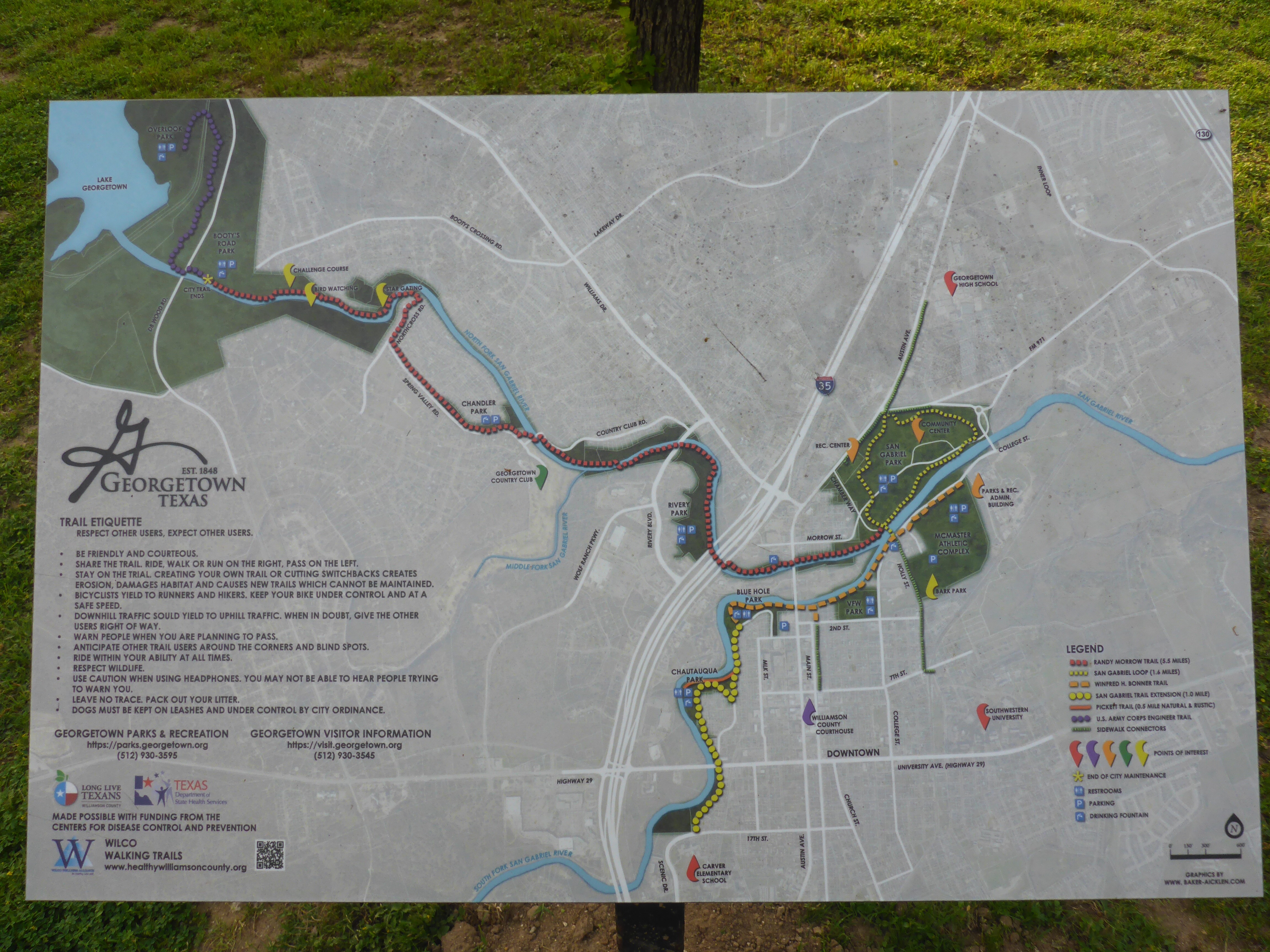 Today’s hike started off at Booty’s Road Park. This is probably my favorite section of the trails along the San Gabriel River with short cliffs on one side and the River on the other side. There are birds and deer along the way also. The trail is gravel in some places and paved in others with resting spots sprinkled throughout. You can hike for a short while and return to the park, or you can take out on a longer route if you want more exercise. Overall, a nice hiking experience in Georgetown.