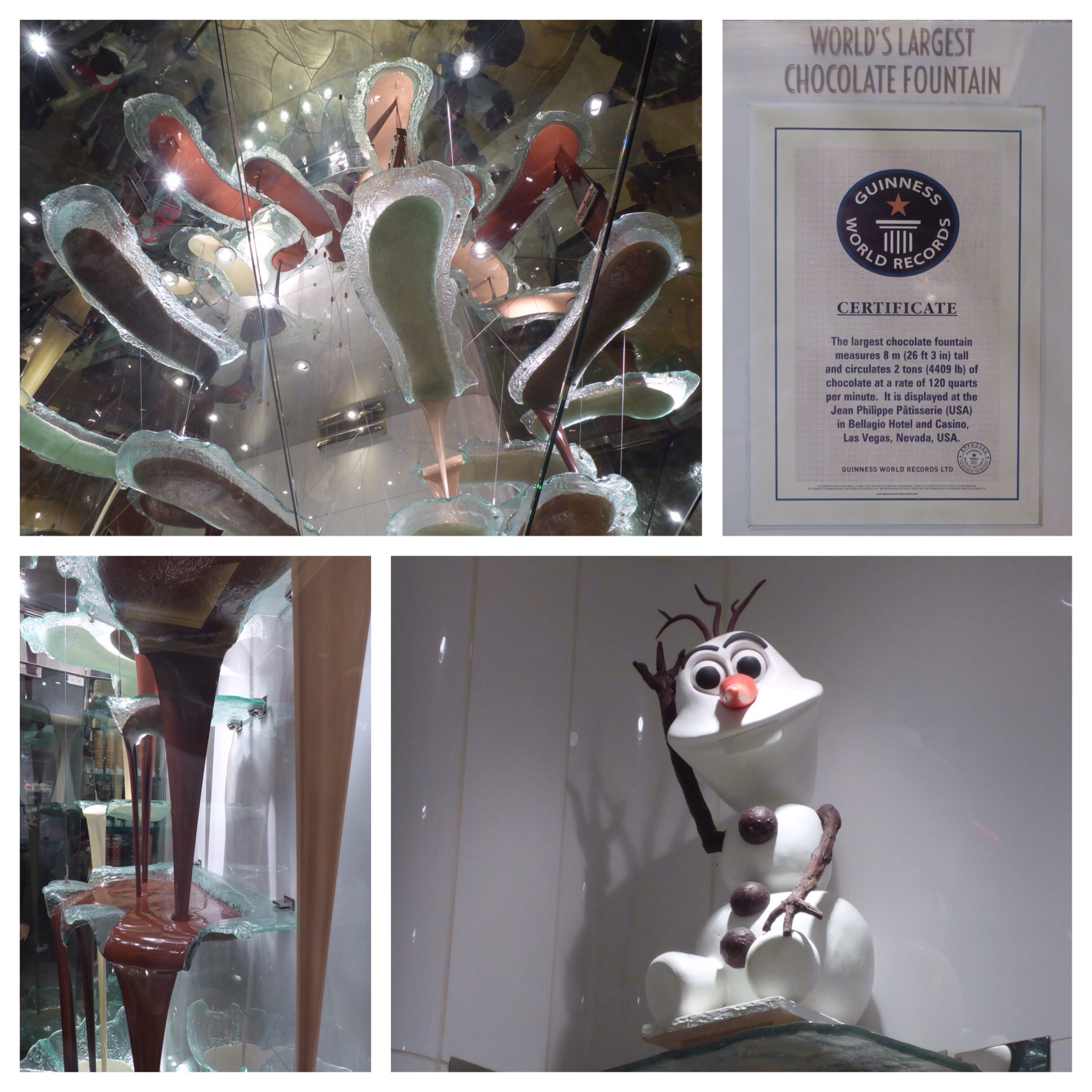 Ever had the desire to see the world’s largest chocolate fountain? You can find it at Jean Philippe Patisserie in the Bellagio. They have snacks, drinks, desserts, and of course – lots of chocolate. They have cakes on display of all sorts and my favorite one was Olaf sitting in the top corner of the restaurant. I ordered a large white mocha and slurped it down on my way to my next Las Vegas destination.