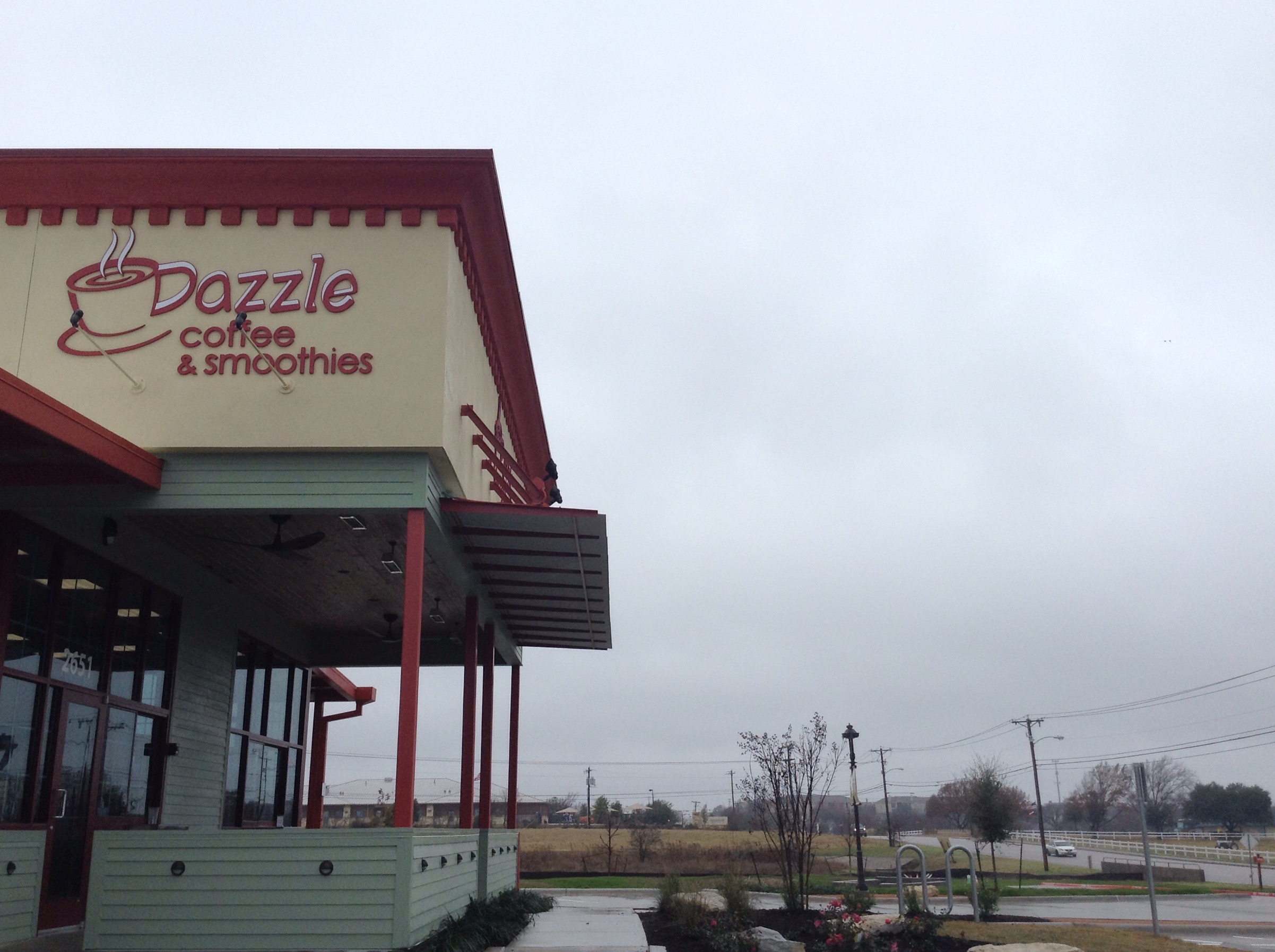 There is a new coffee joint in Round Rock called Dazzle Coffee. Don’t go there expecting your normal coffee place where you go in and lounge about and glom on to the free internets. Dazzle is on to you people, so they have a drive-through or walk-up only kind of place. I got the “Frezian” with the “Zebra” flavor (white and dark chocolate), and I recommend this drink for helping you to be more productive in the New Year. Sorry if this wrecks any of your dieting plans.