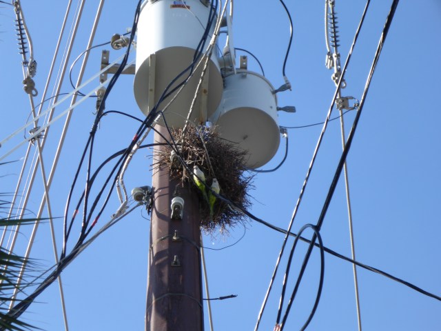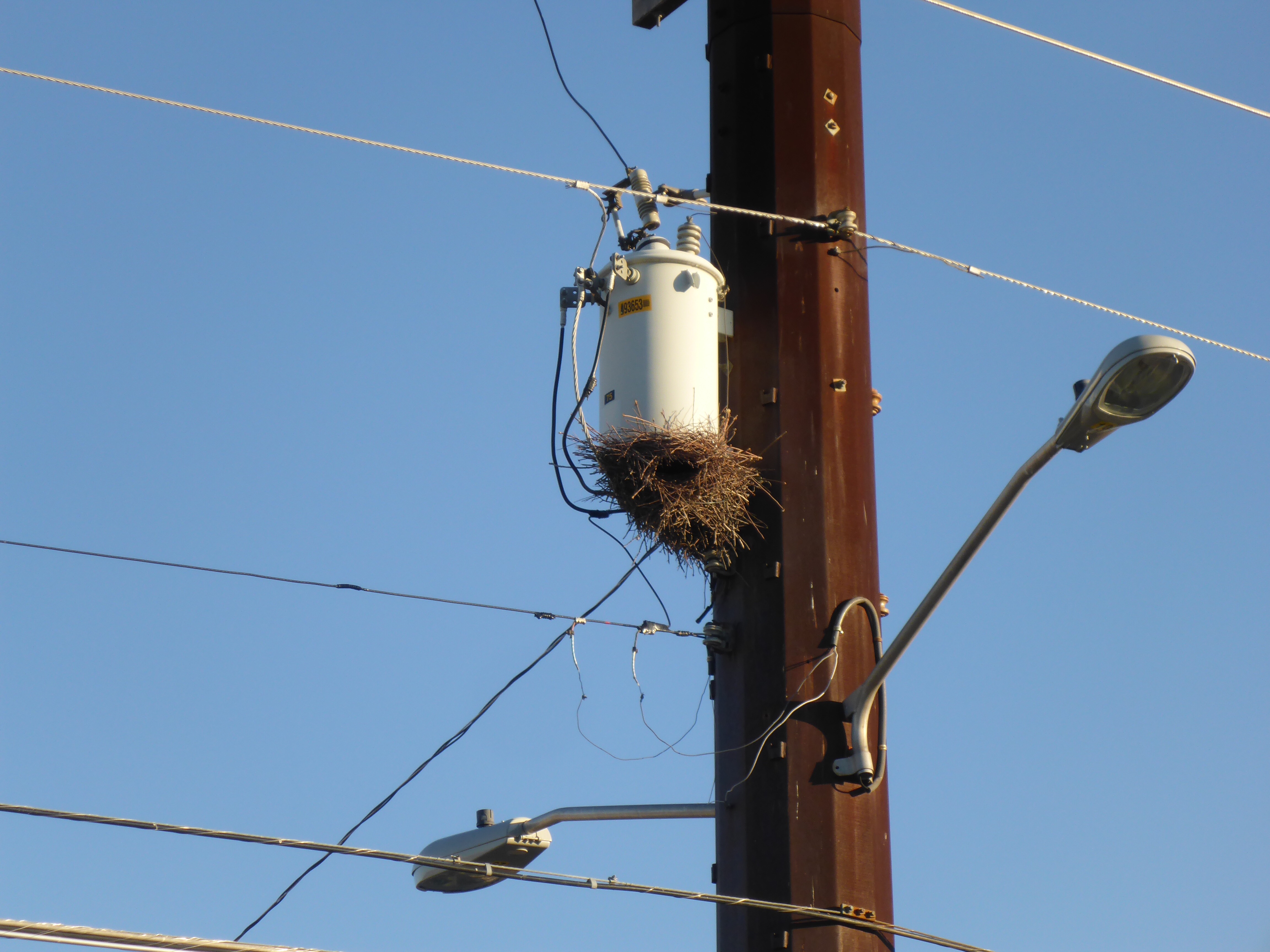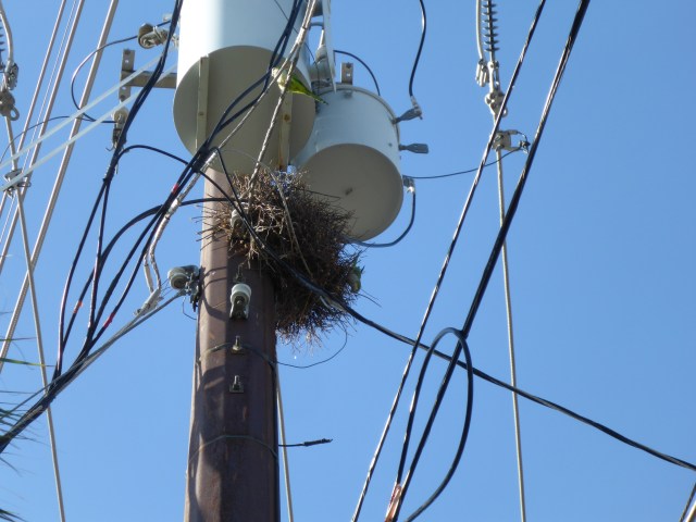 - For some reason, they like to build nests on electric utility poles.