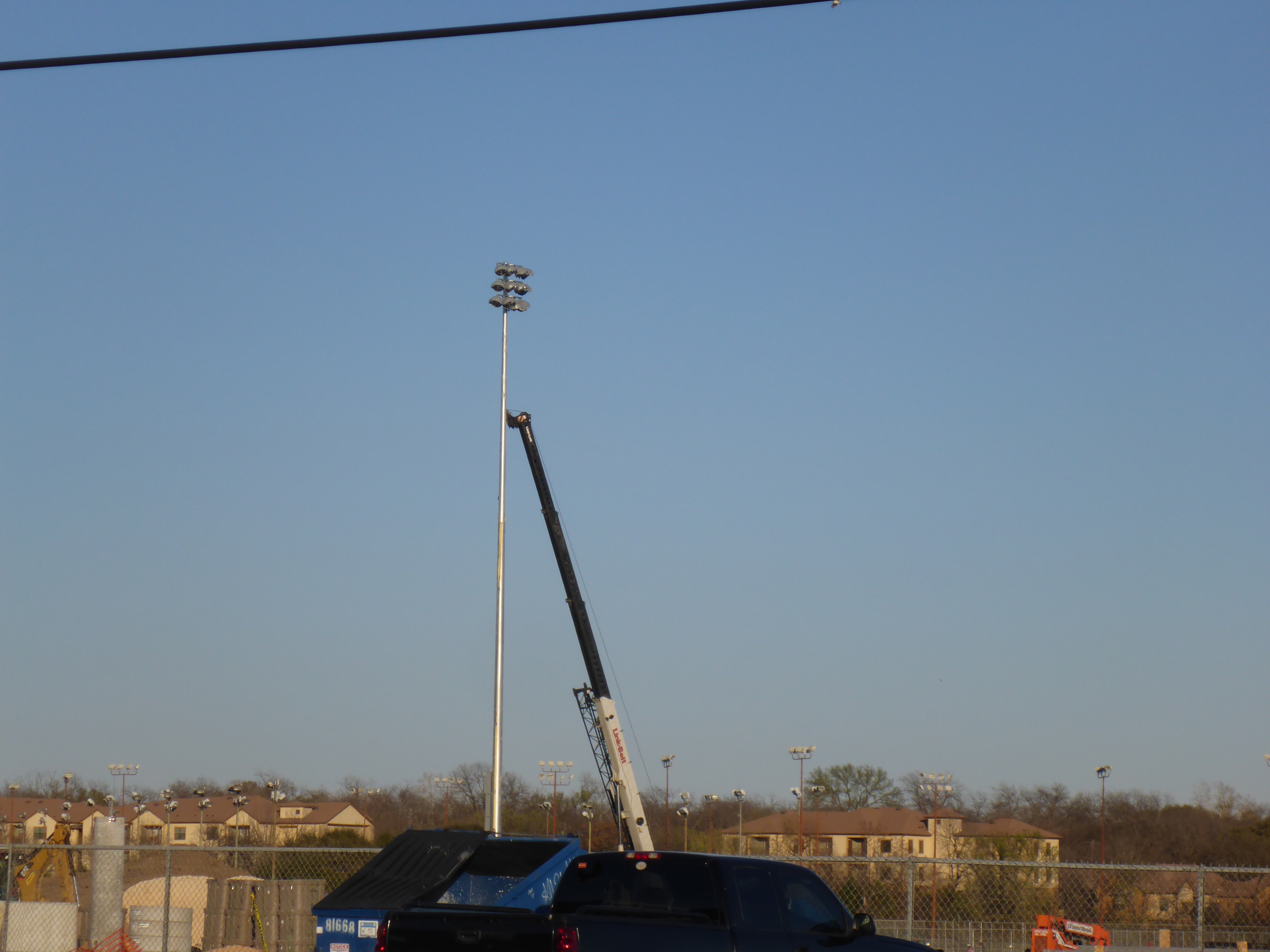 I read an interesting article today about the Monk Parakeets of Austin. Then I discovered the very cool Facebook page. So, off I went in search of these birds. As the story goes, the construction at the University of Texas intramural fields has taken some of their homes away since they liked to build nests in the light towers. It is not confirmed if they will like the new light towers or not – and to complicate things, it is rumored that the grass fields will be replaced with AstroTurf. Who new that Austin growth would negatively affect bunches of Parakeets?