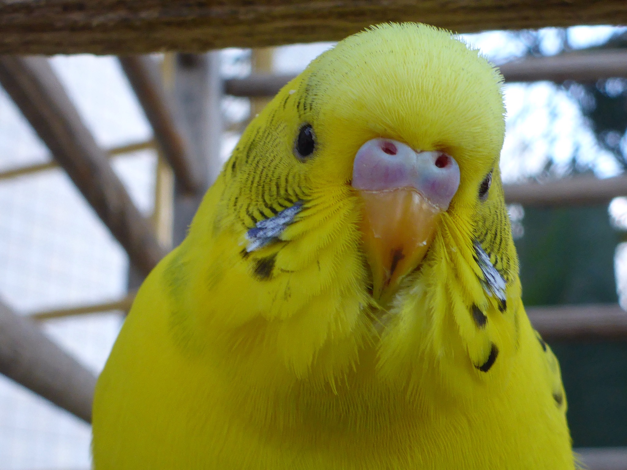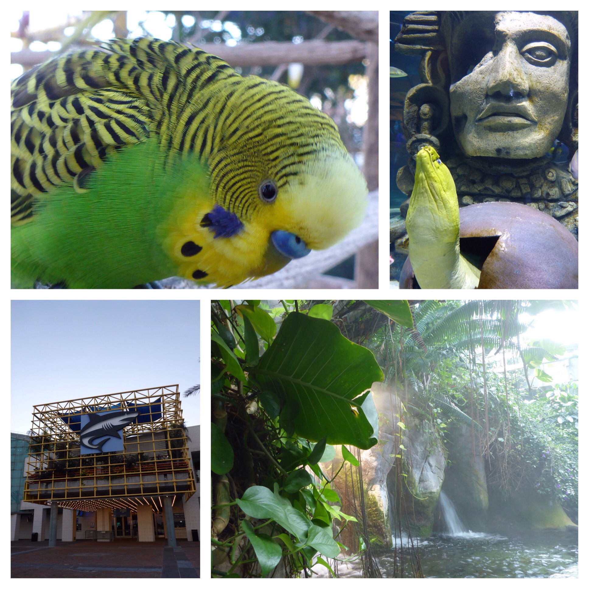 The parakeets at the Audubon Aquarium of the Americas are curious and friendly. They were all interested in my jacket pocket and they wanted to climb up to my shoulder to have a look around. What fun they were!