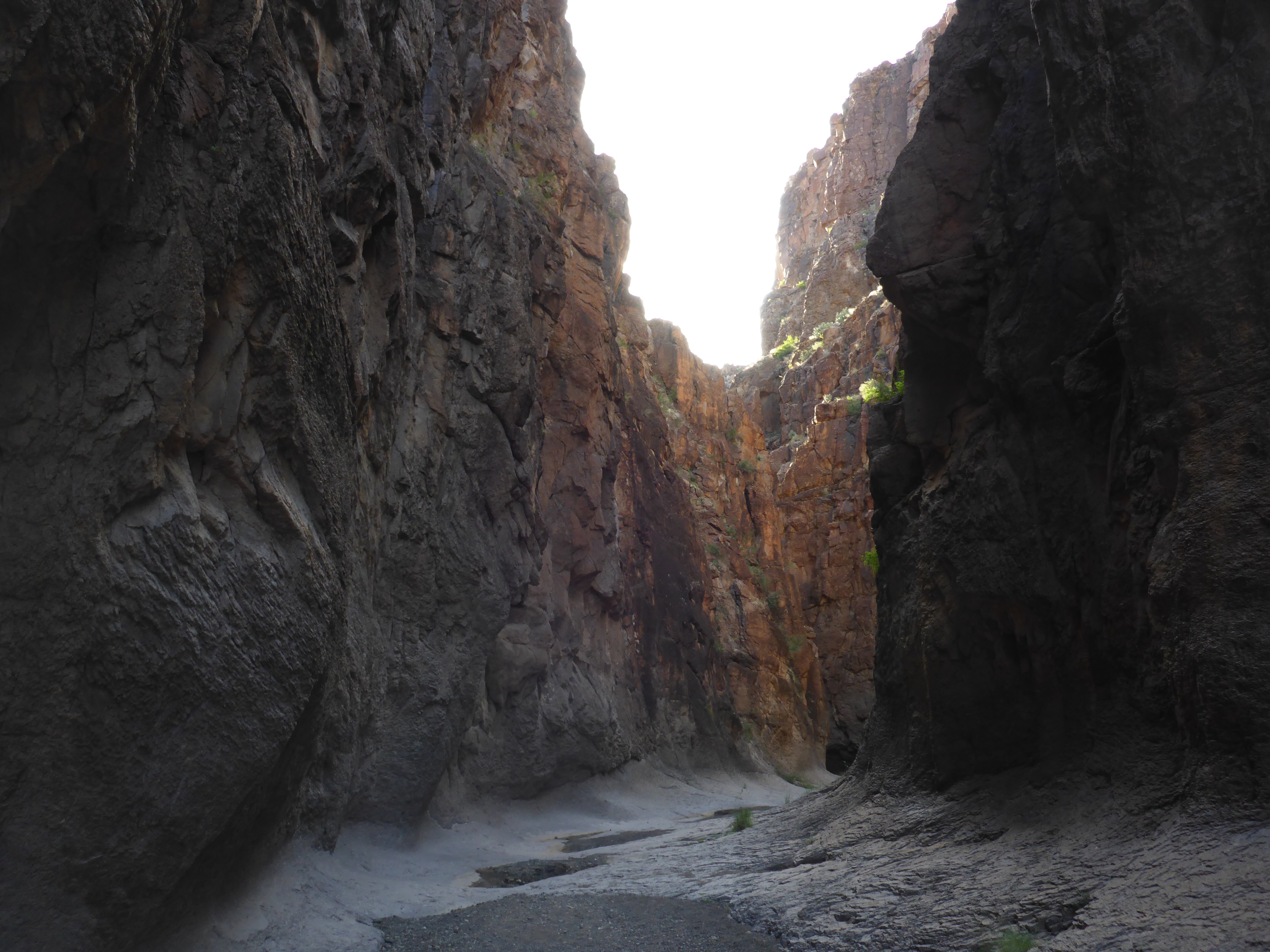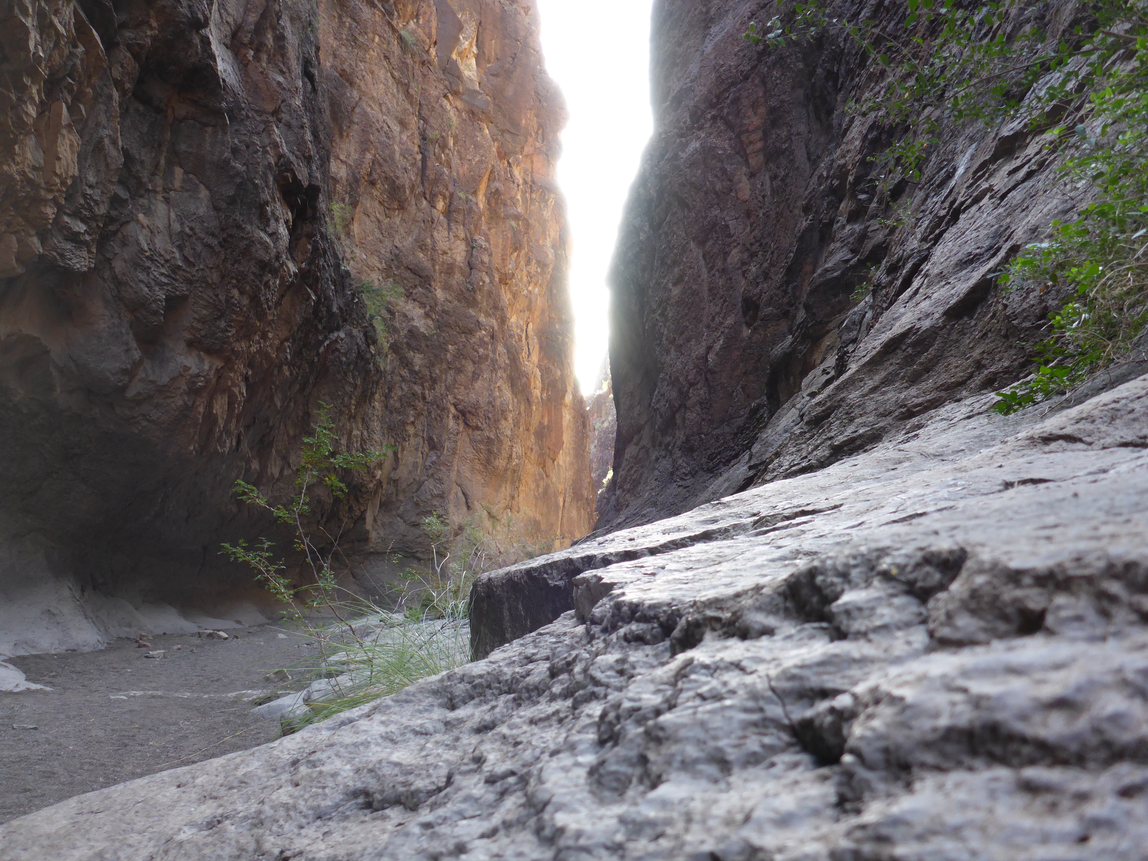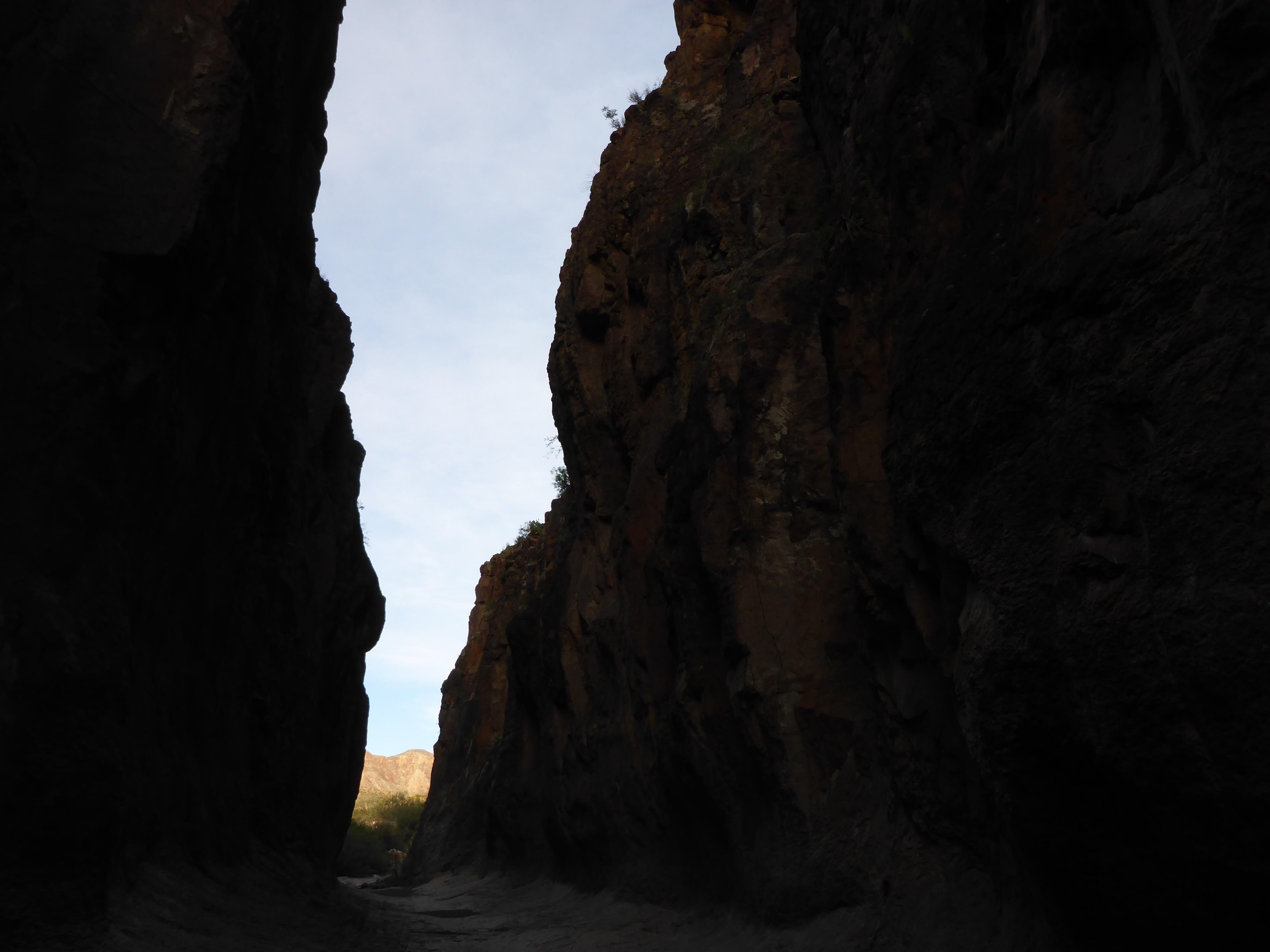 Closed Canyon is a slot canyon located in the Big Bend Ranch State Park. The trailhead is just off of Farm to Market Road 170, and the hike is about 1.4 miles long round trip. It is a beautiful place. According to the brochure, “Mountain lion, javelina, rock squirrels and a variety of lizard and snake species including the greater earless lizard, desert spiny lizards and the western diamondback rattlesnake may be seen in or near the canyon.” Lucky for me, I had the Canyon all to myself.