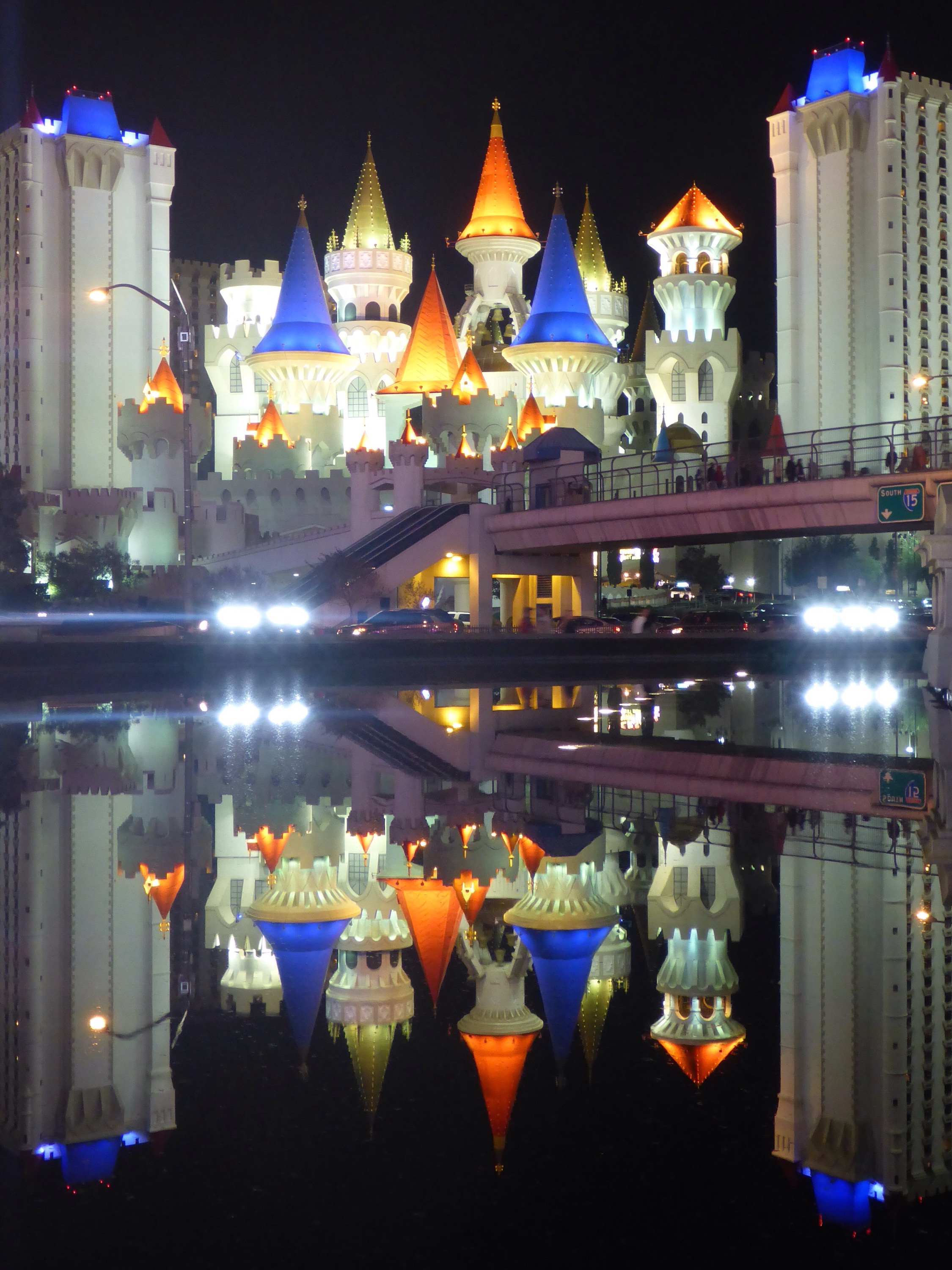 After way too much yummy food in Vegas, I decided a long walk at night would be good for me. I headed South on Las Vegas Boulevard to see what I could find. This reflection of Excalibur was my favorite scene of the night.