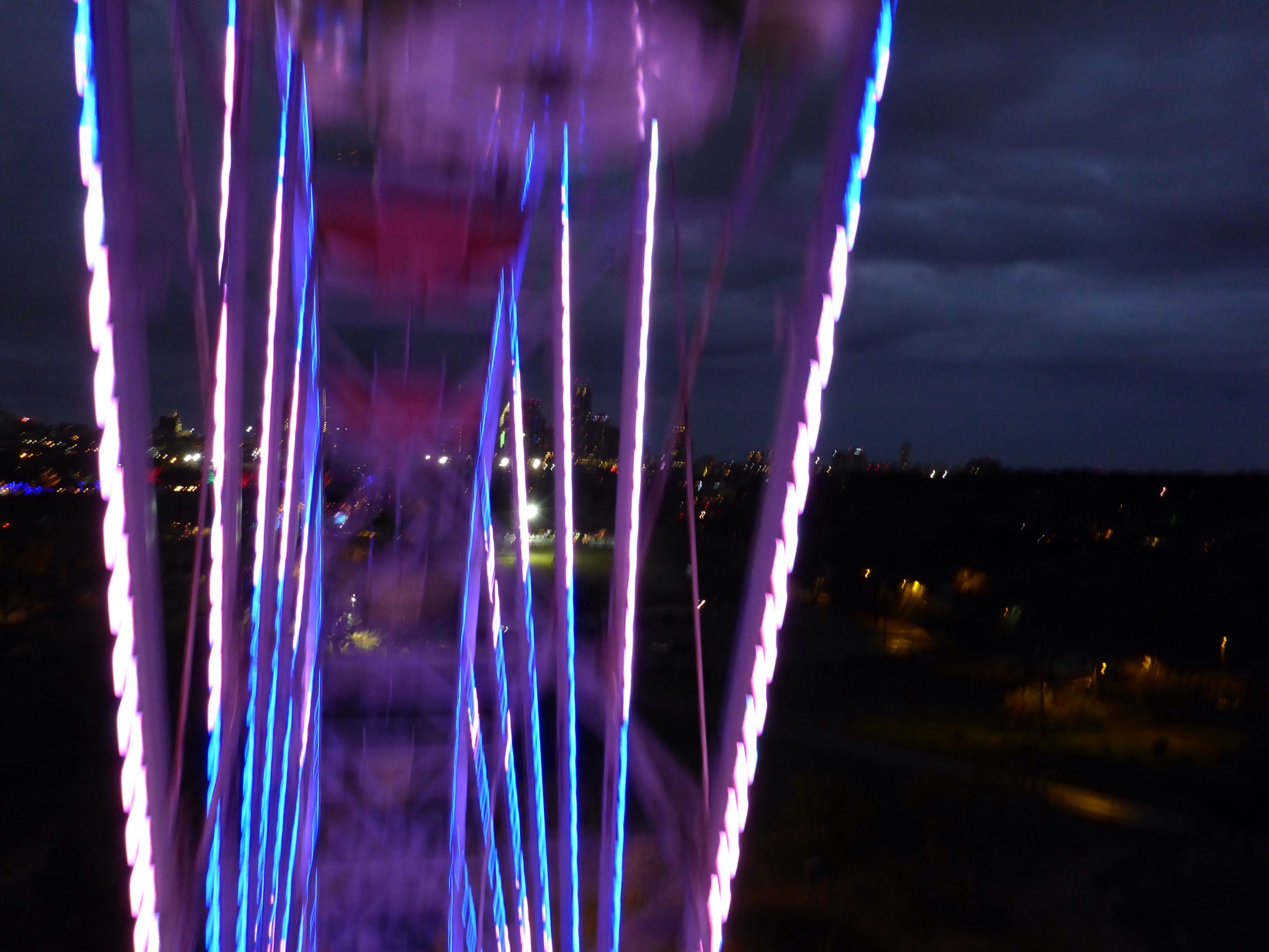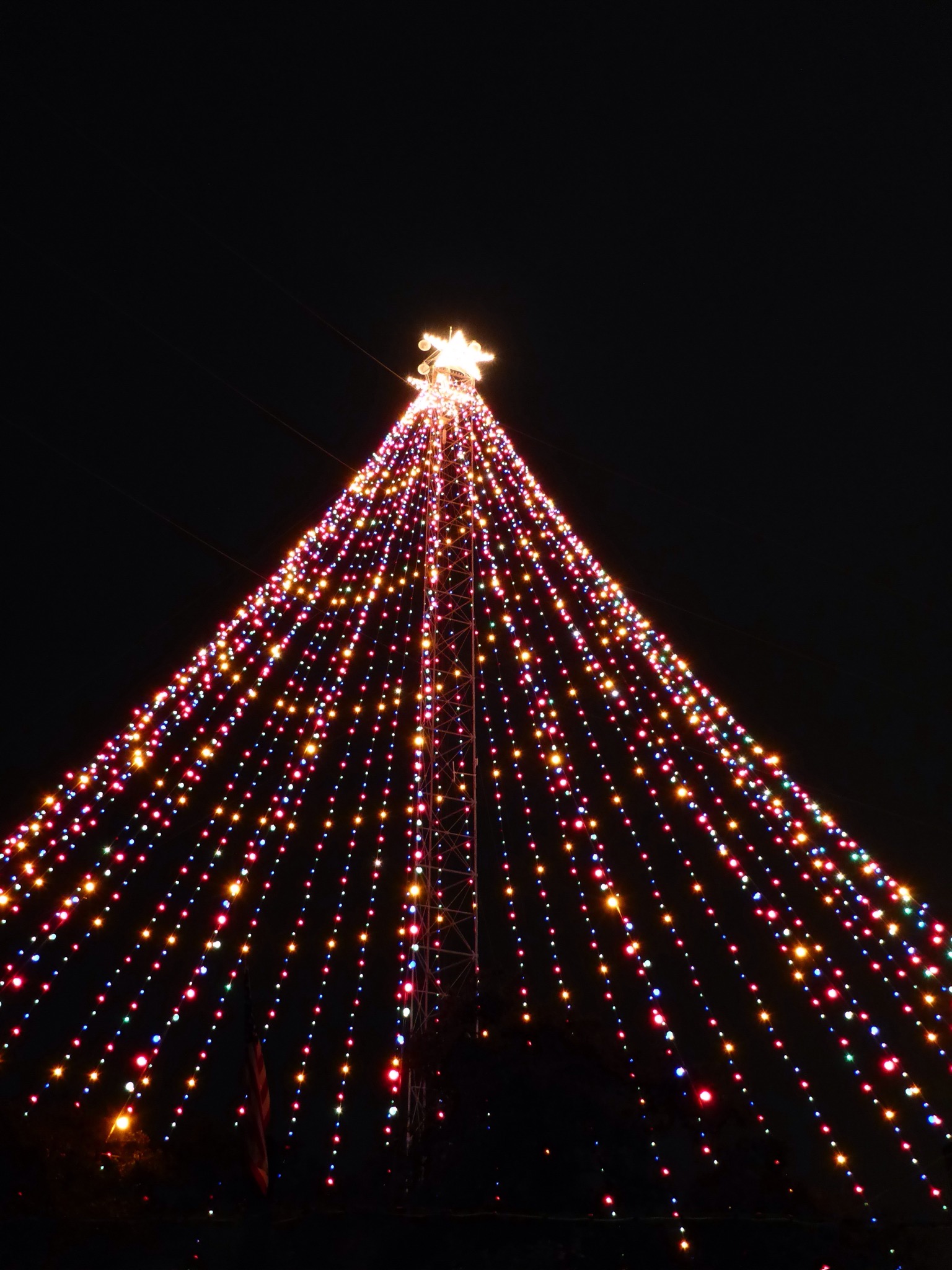 Tonight’s mission was the Austin Trail Of Lights. The weather called for a warm, rainy night and they were right. I took the shuttle bus from Downtown Austin and your first sight off the bus is the giant tree of lights strung from one of Austin’s Moonlight Towers. What a sight!