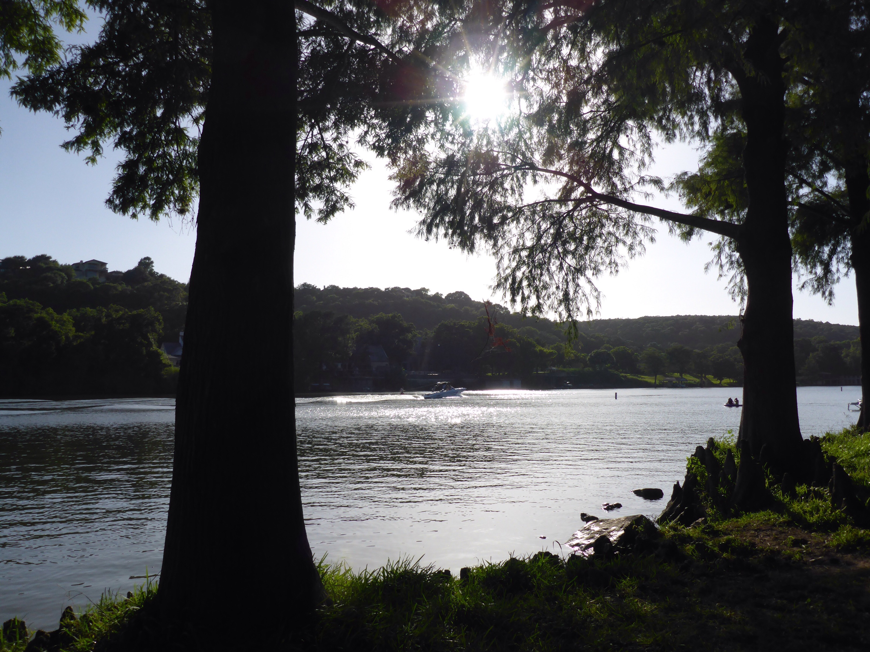 After work today, I walked along the shoreline of Emma Long Metropolitan Park and then beat the heat by going for a sunset swim. The summertime people were out in full force.