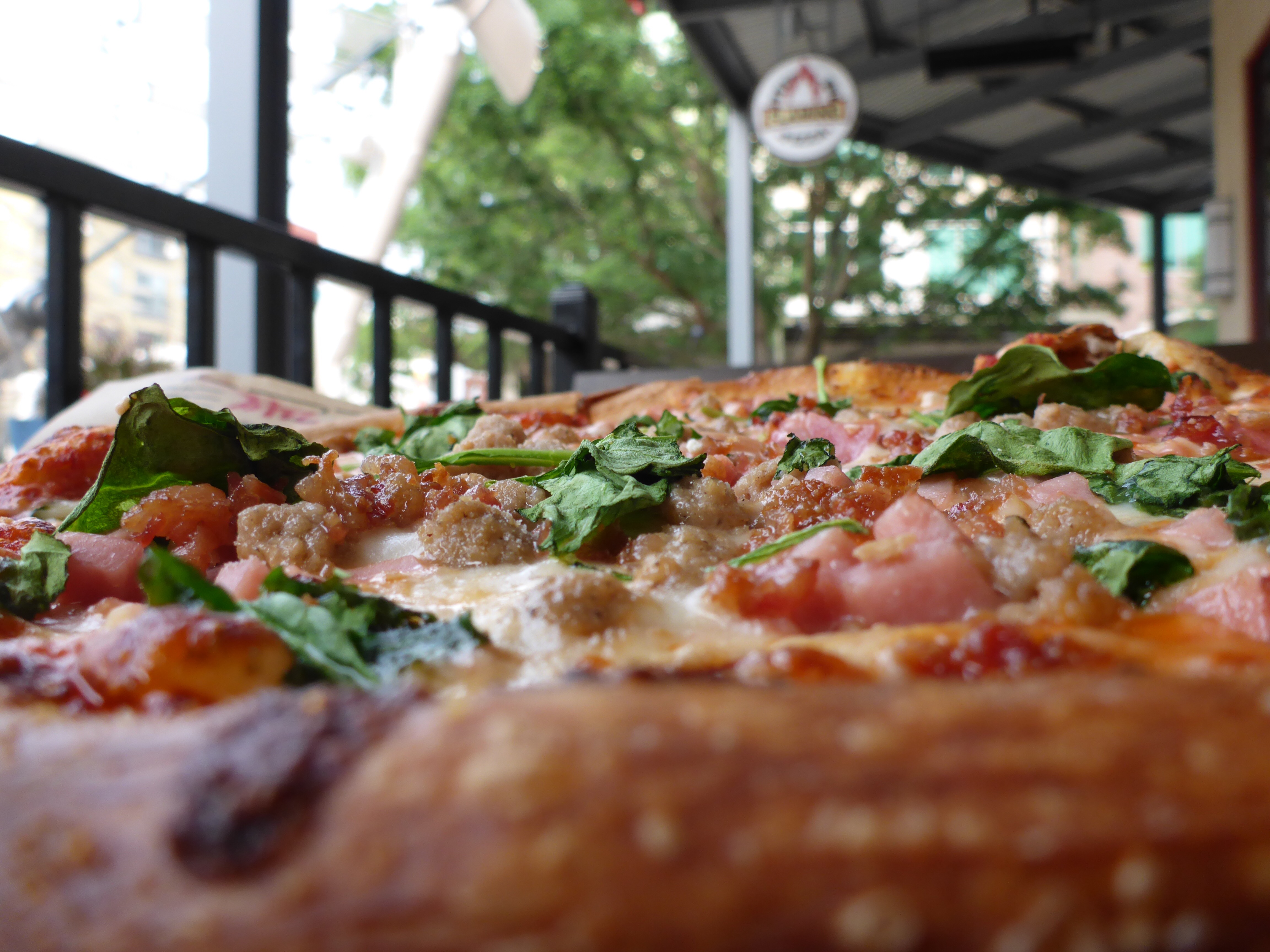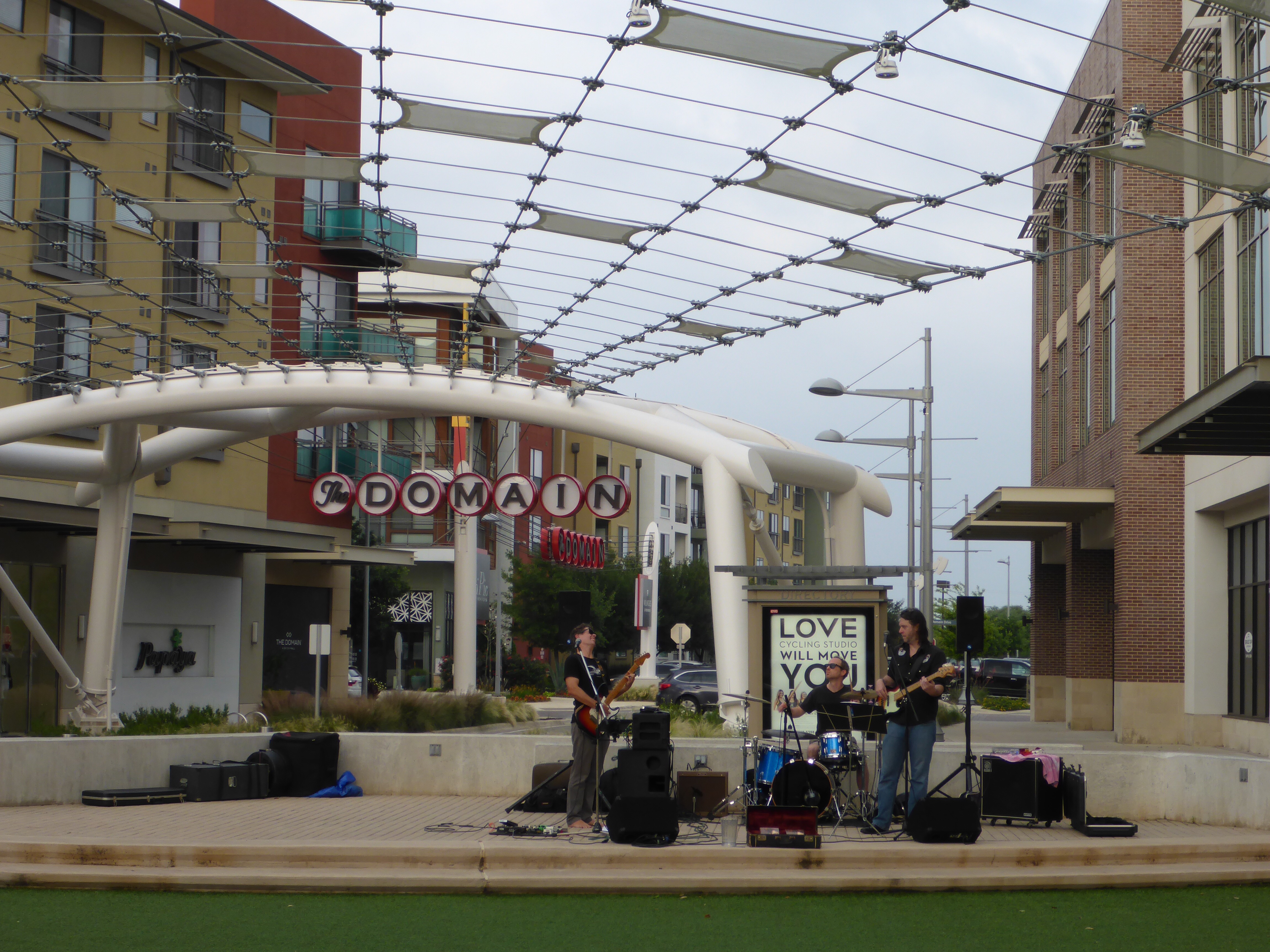 If you go walking at the Domain on a Friday evening, you can experience several things. You can stop and admire the red roses. You can catch a rock band playing on the Great Lawn stage. Drop in at Flaming Pizza and build your own pizza creation. Make friends with a grackle who really just wants to taste a bit of your pizza. And as you walk back, you can catch the sun as it begins to set behind the power lines. Not too bad for a Friday evening.