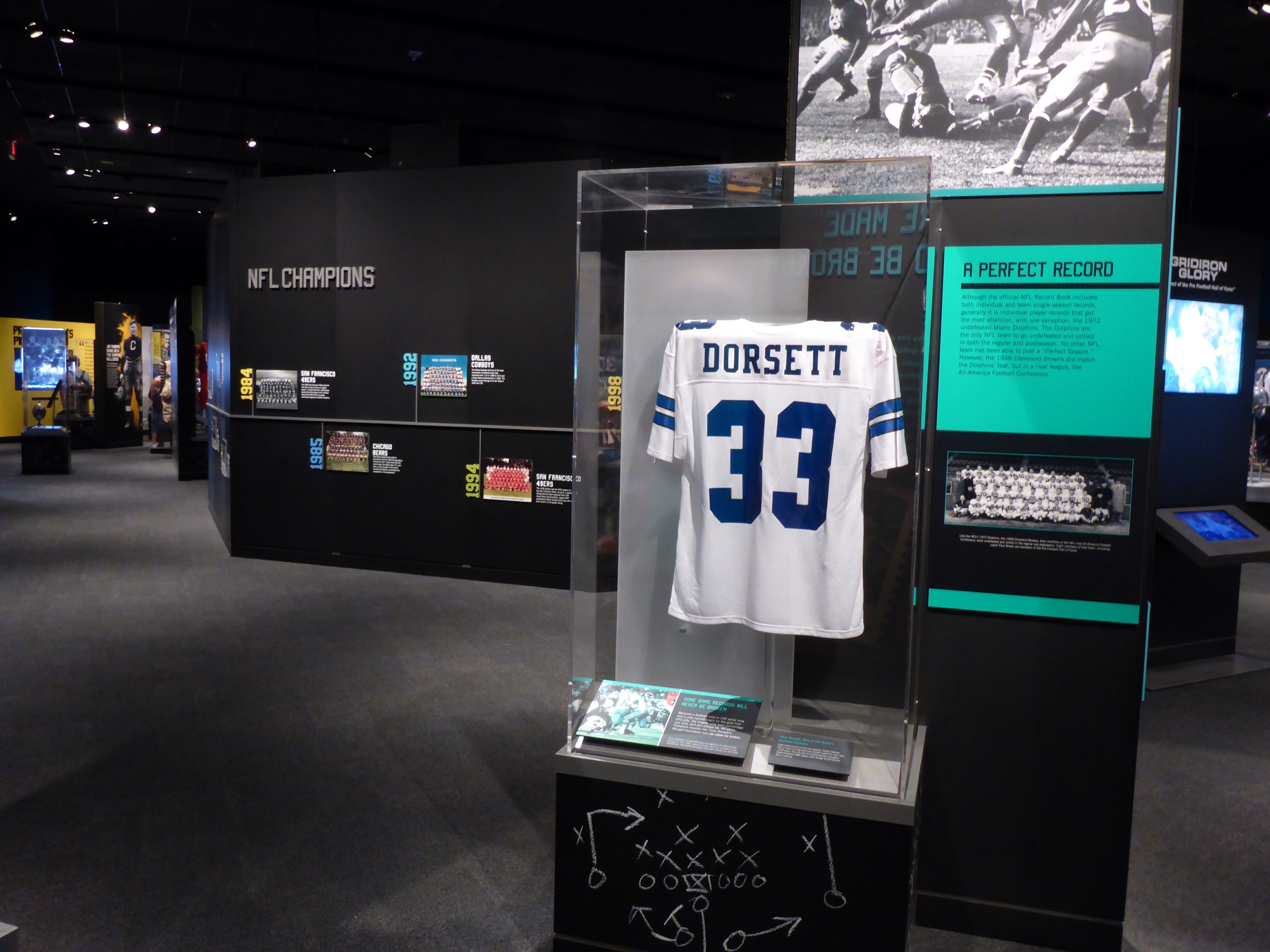 The Bob Bullock Texas State History Museum has a traveling exhibit from the Pro Football Hall of Fame called Gridiron Glory. I hope you are a fan of the Dallas Cowboys! I grew up watching them, lived less than a mile from the old Texas Stadium in Irving, attended many games as a fan, and even worked as a souvenir salesperson as a teenager. So obviously, my photos from the exhibit are slanted towards the Cowboys. There is much more to see, and the exhibit will be here until January if you want to come to Austin for a visit. 🙂