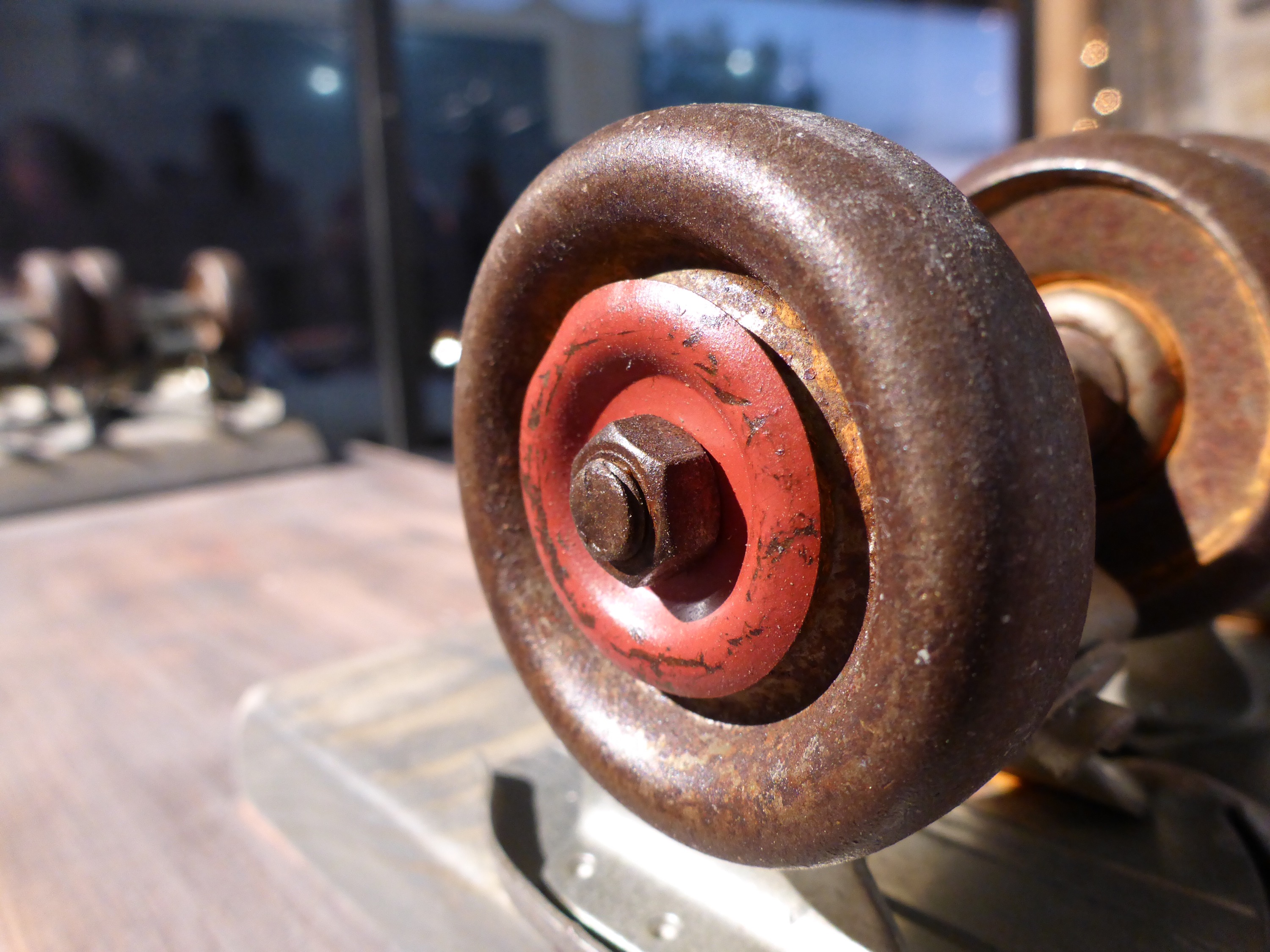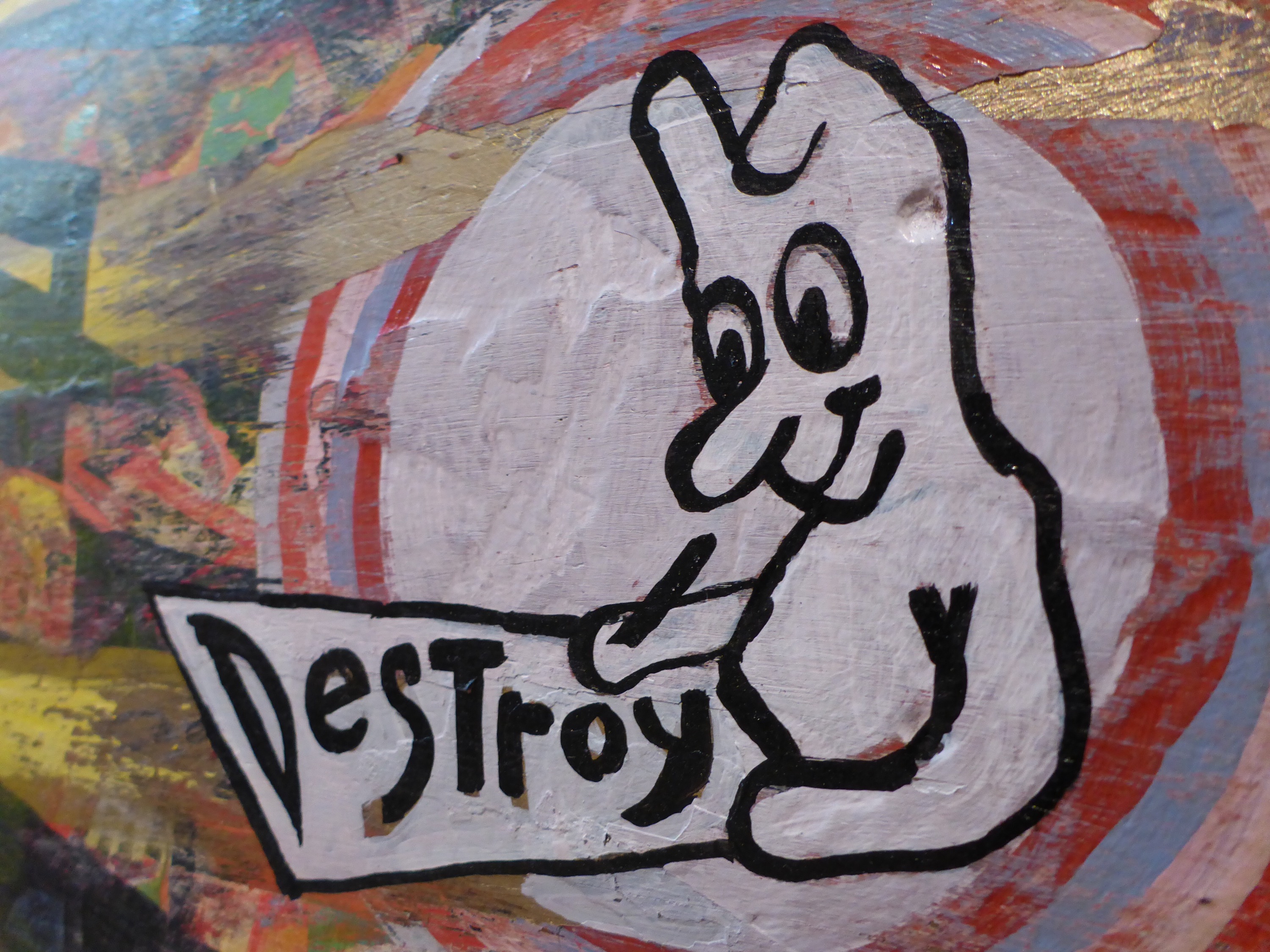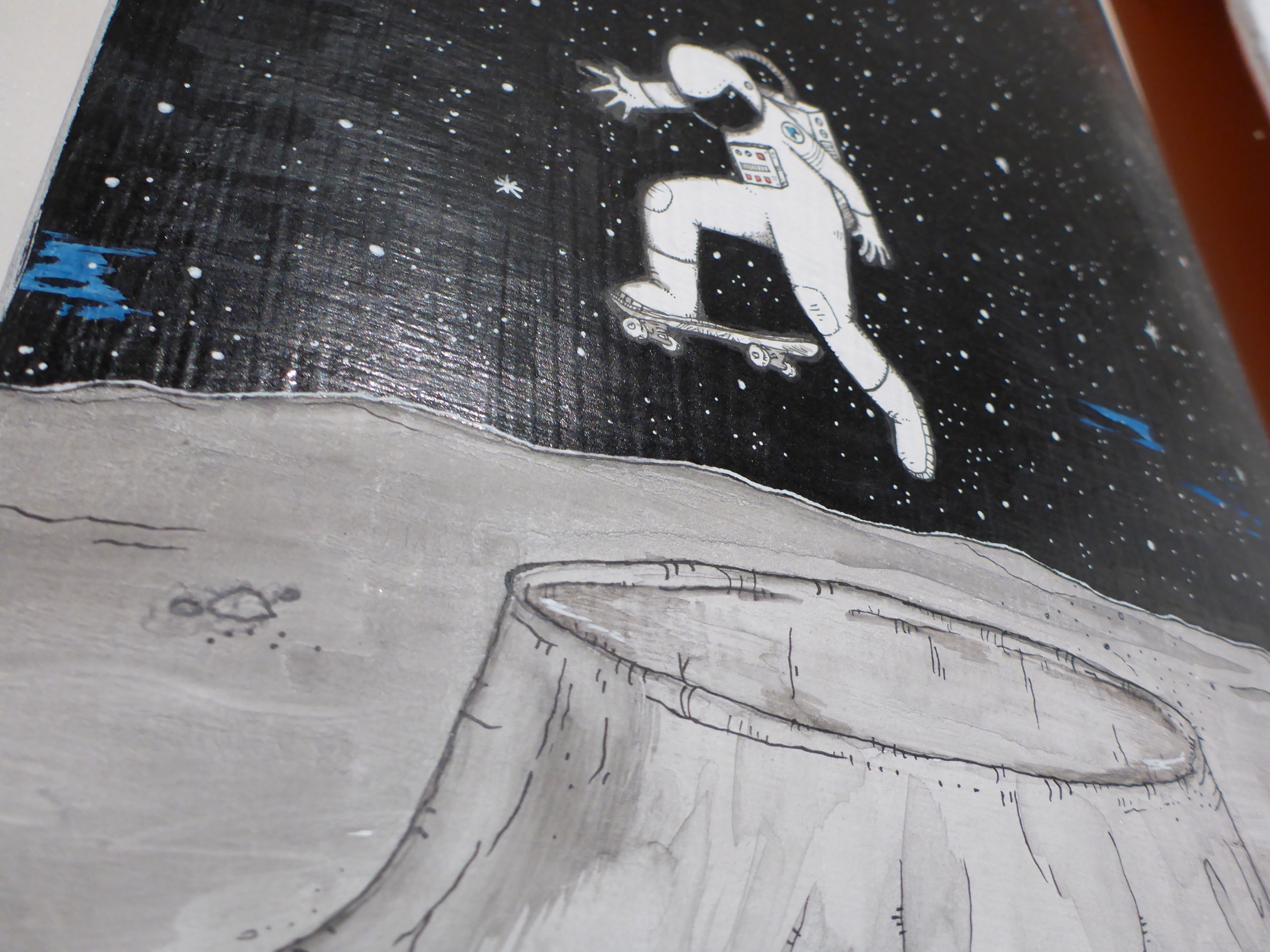 My real reason for visiting Taylor, Texas today was the Skatepark Fundraiser put on by Project Loop. Over 150 artists contributed art on skateboards to help raise money for the kids of Taylor to build a skatepark. What an innovative way to put some funds together! The favorite skateboard art amongst the younger set was the “Operation” skateboard that lit up the patient’s red nose when the operation hit the guard rails. I had to fight the kids to get a photo of that board. My personal favorite was the moon man jumping asteroid craters. “SK8 or DONT” 🙂