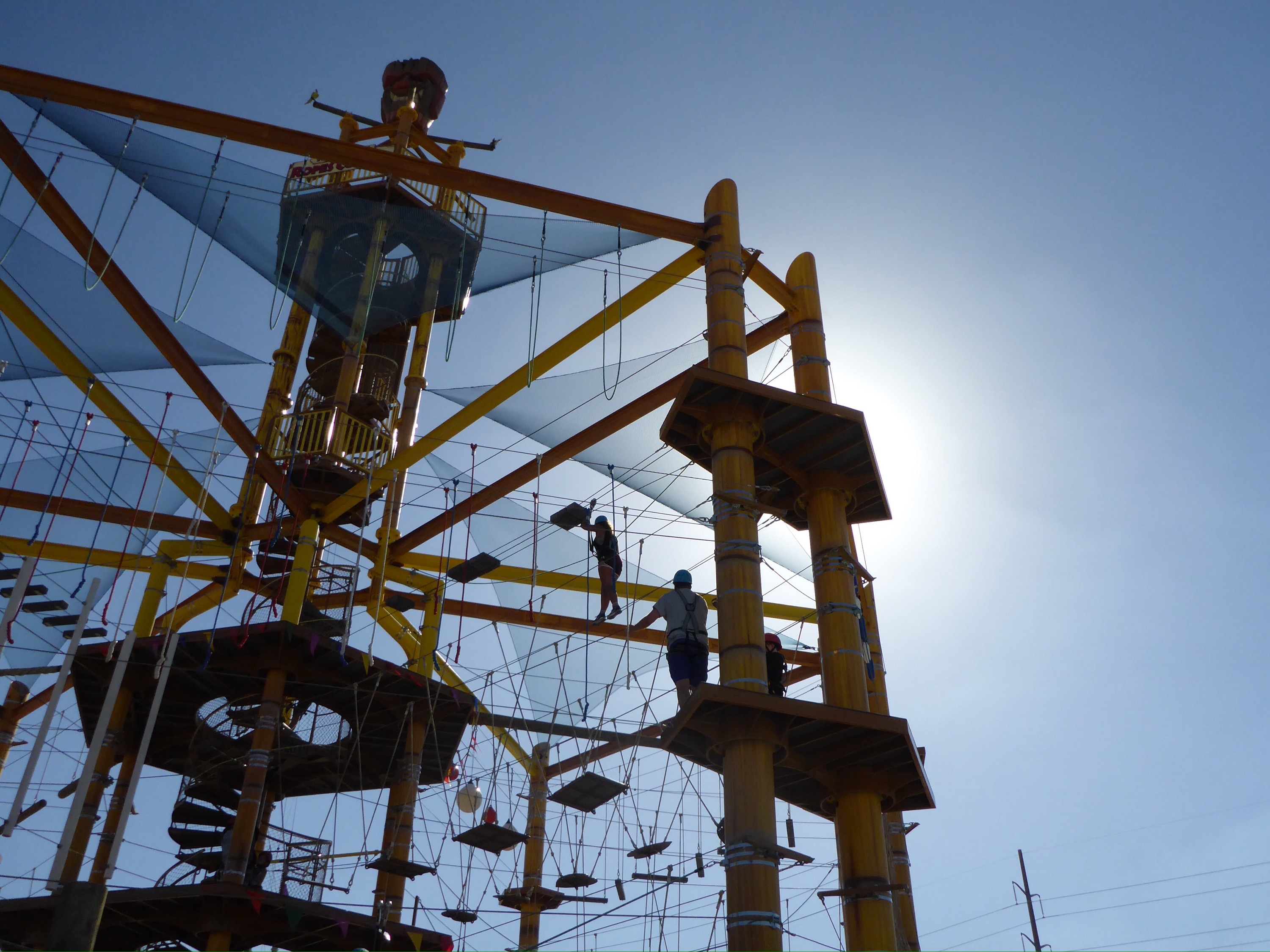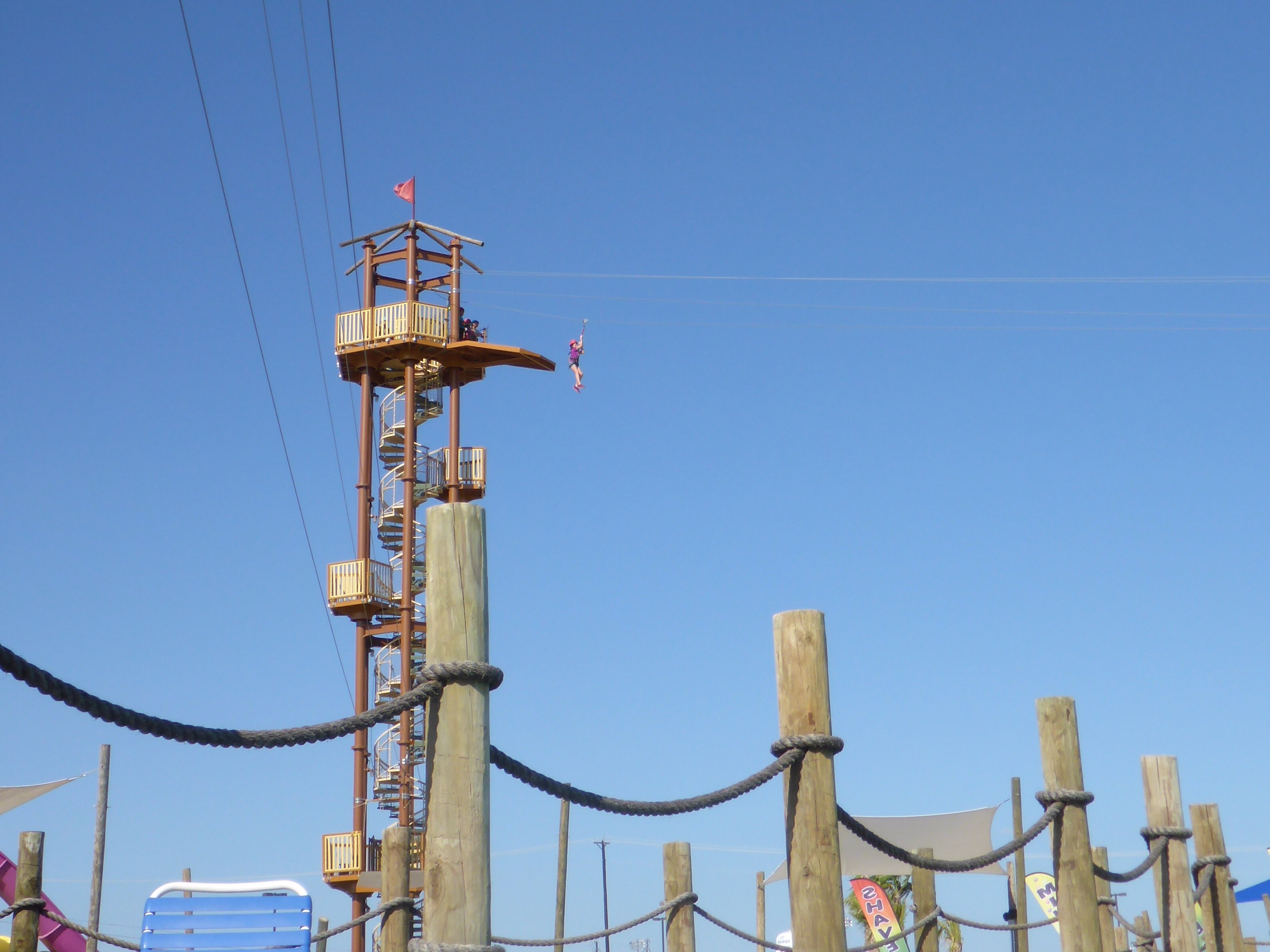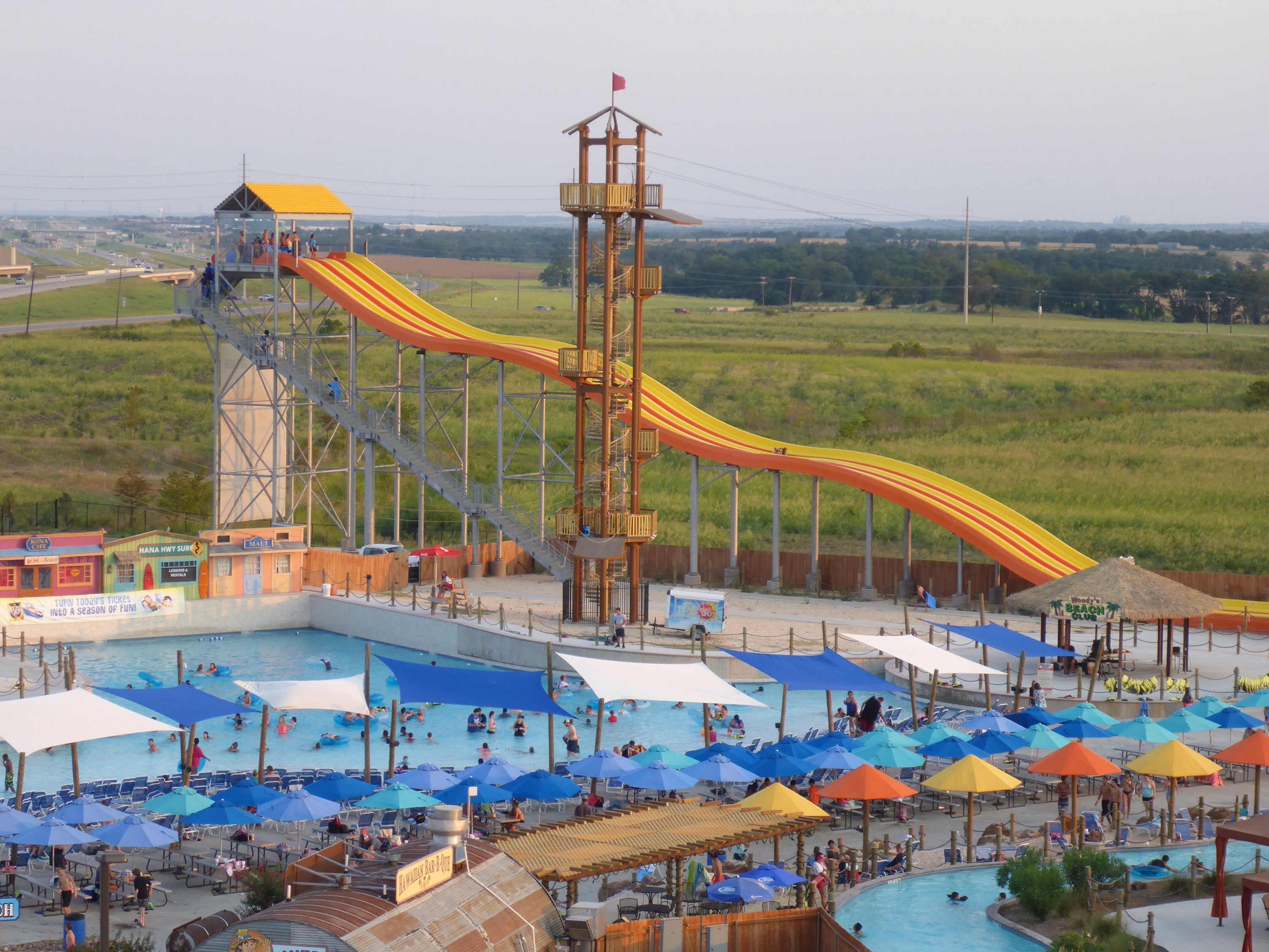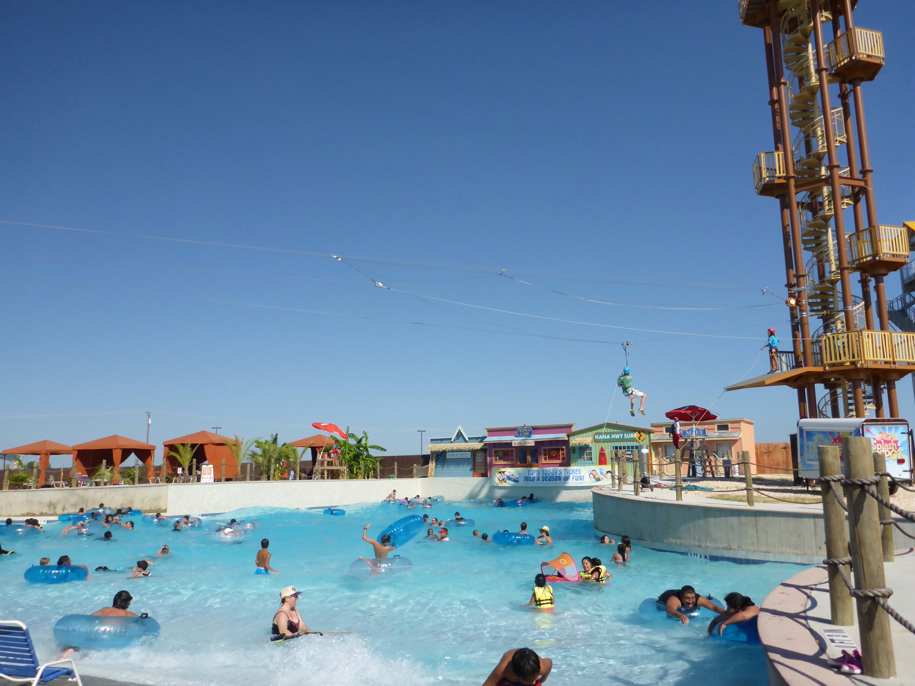 Tonight was Friday Night Slides where they keep the Hawaiian Falls park open until 10:00 pm. It was my first time here, and this place is totally fun. They had a DJ who controlled the music throughout the entire park and kept it upbeat at all times. There was an outdoor dance floor, Zip lines, water slides, an elevated ropes course, a wave pool, a lazy river for floating, sandy beaches for lounging, food, and drink. Next Friday, they will do it all again. 🙂