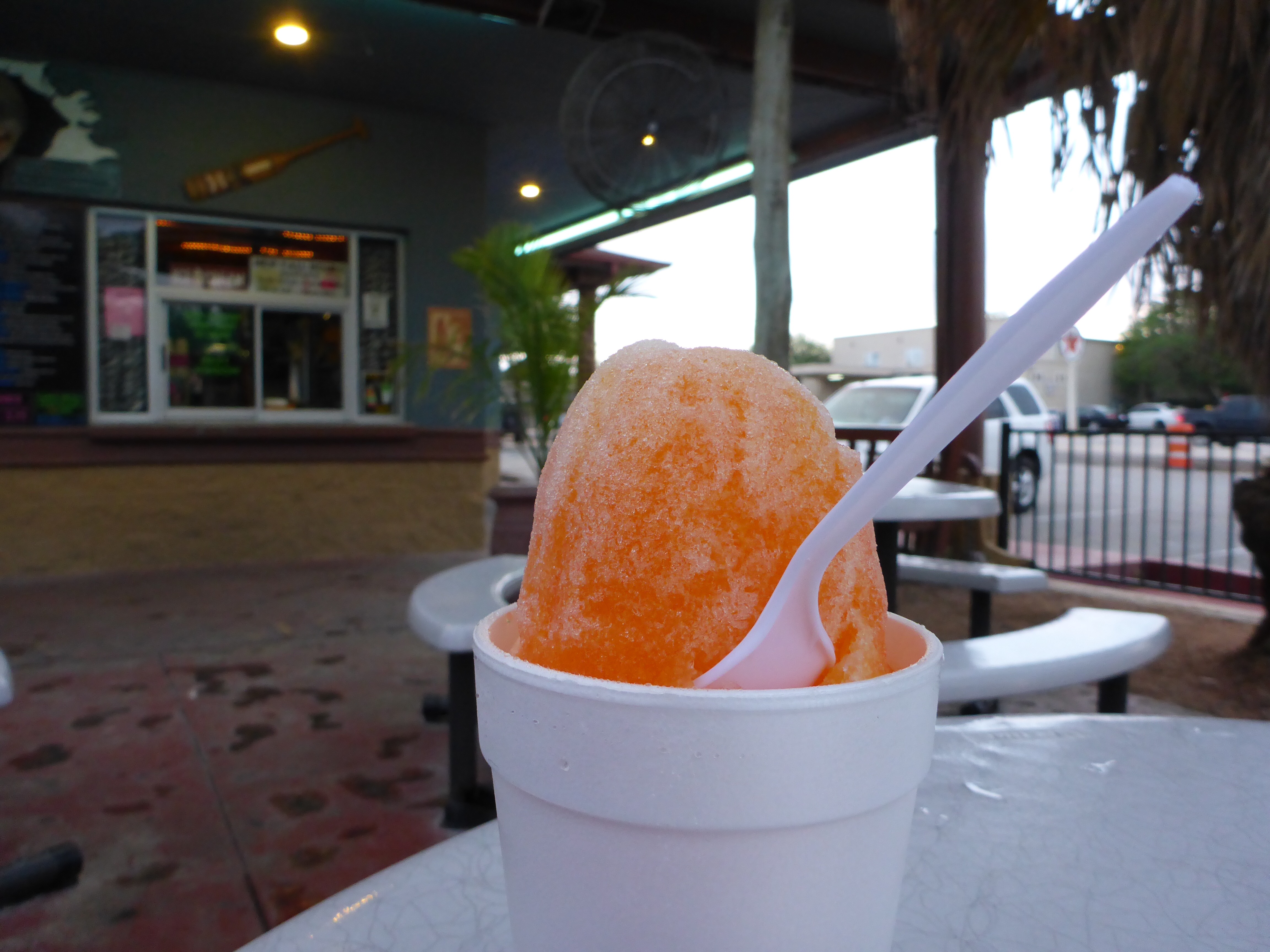 Close to the water tower in Downtown Round Rock, there exists the most wonderful place for an icy treat when the weather begins to get warm again. The high today was 81 degrees Fahrenheit, so an afternoon trip to Kawaii Shaved Ice was the perfect plan. Some coworkers and I enjoyed the oasis-like setting for a short team building exercise. I ordered my standby shaved ice flavor – grape. We then enjoyed the shady tables, shooed off a few small bees who wanted in on the grape action but were too shy to pose for a photo, and had some nice conversations. I will have to remember to visit again soon and maybe experiment with a new flavor next time…