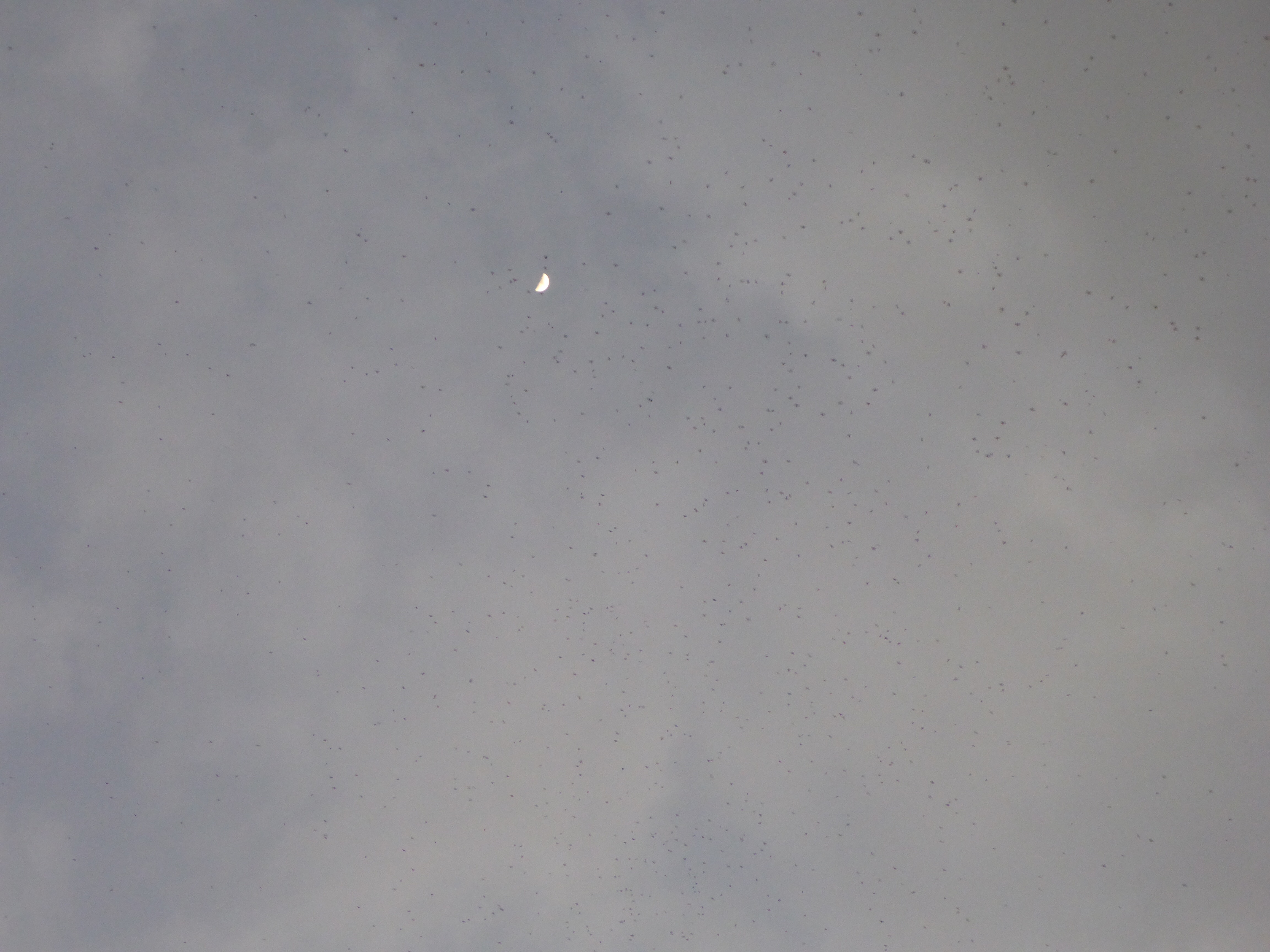 Wednesday evening. Go downtown, take a walk, stroll by the water tower, stop in for an orange shaved ice with sour spray, walk some more, admire the bats flying out in the moonlight, and finish off the evening by creating run-on sentences with too many commas.