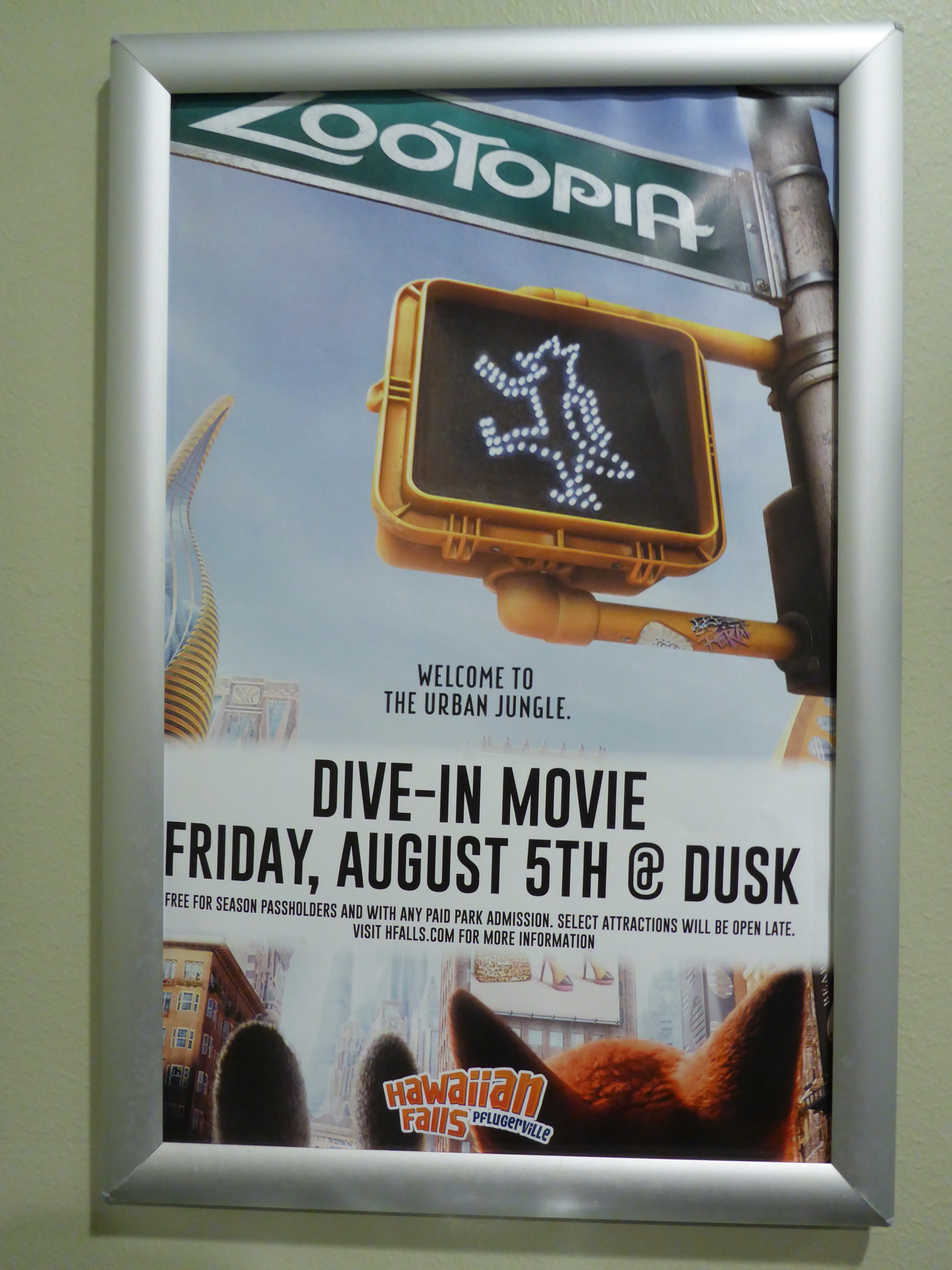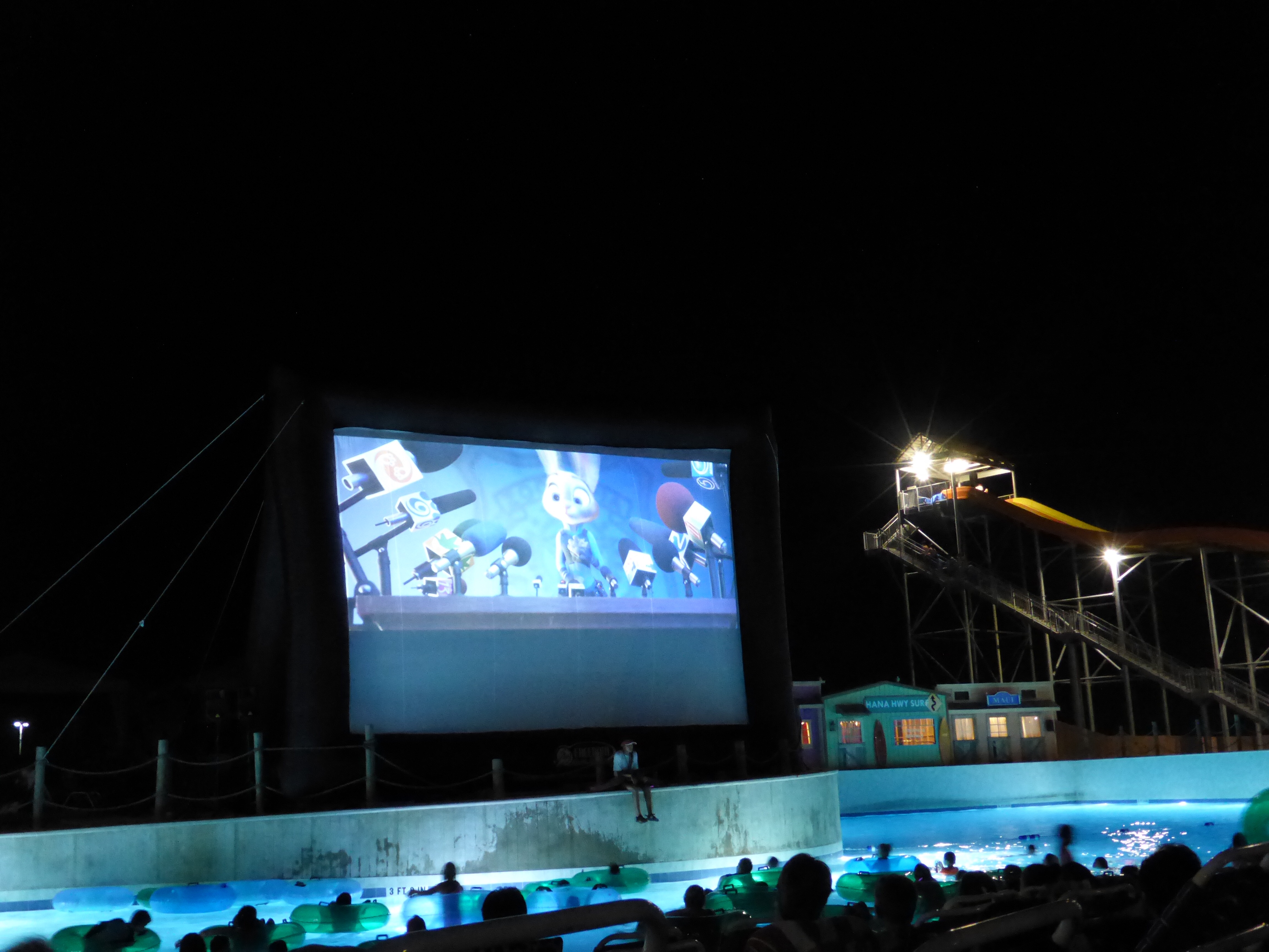 One of the best animated films I have seen in a while, and seeing it at the local water park made it even better. Everyone gathers around the wave pool, and watches on the big inflatable screen. This is a detective story that starts when Judy Hopps becomes the first bunny to join the Zootopia Police Department. The story is good, and there are lots of laughs along the way. Overall, a fun night!