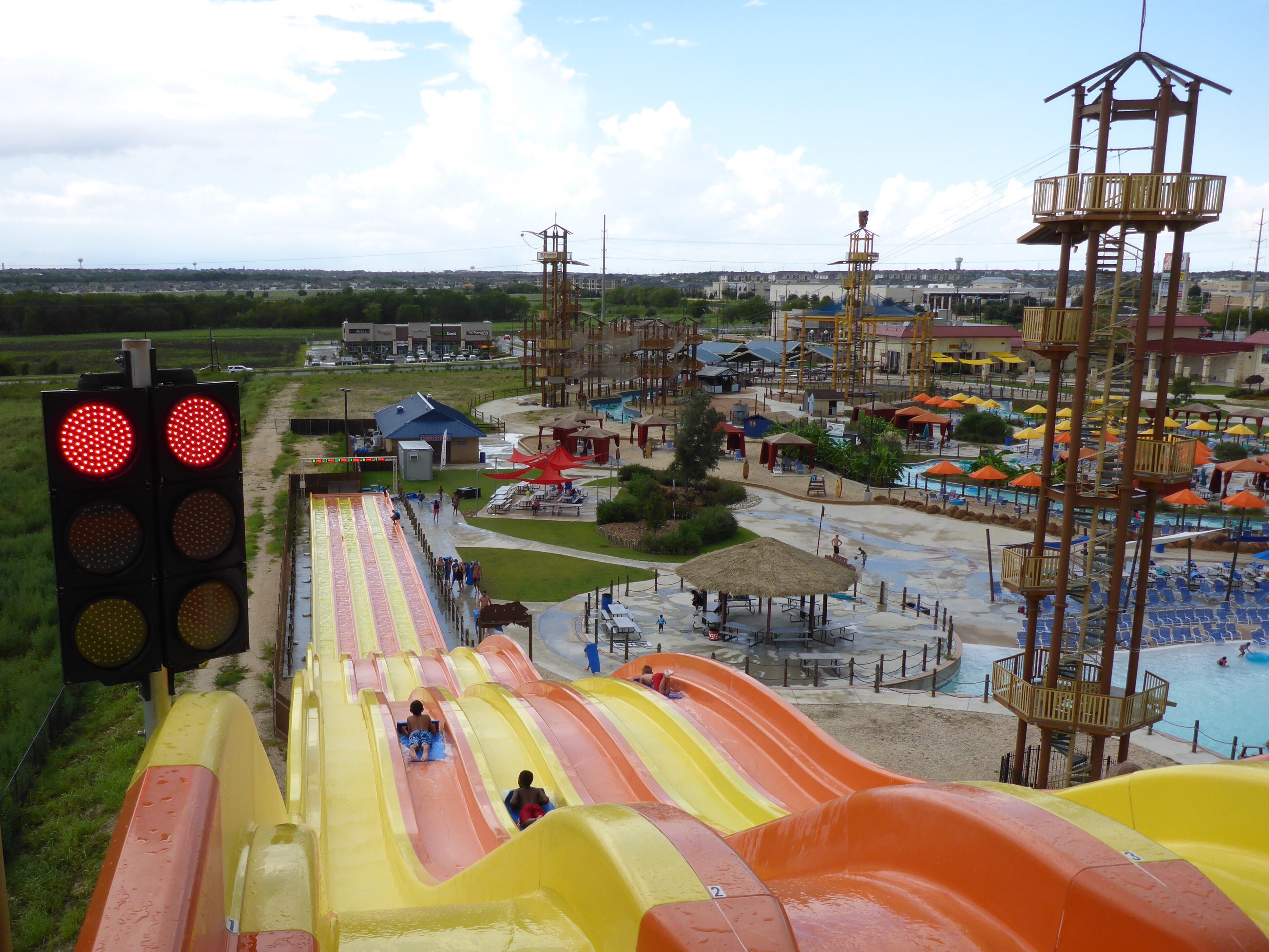 The intermittent rain showers chased some of the crowds away from the water park this afternoon. For some reason, I think that water parks are more fun when it rains. 🙂
