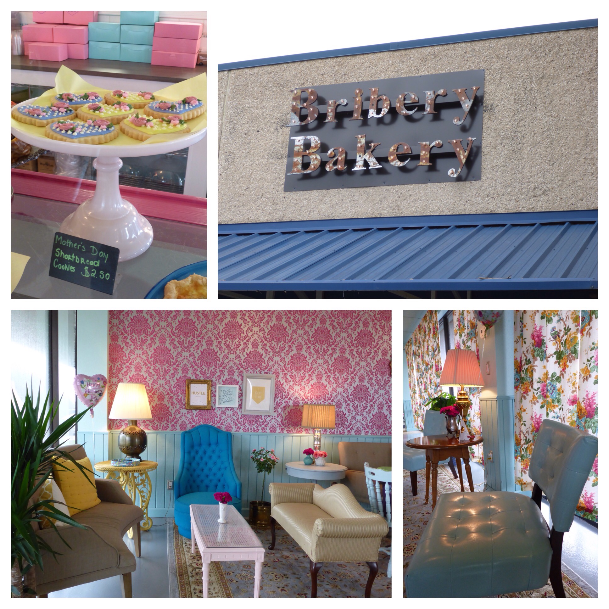 Today’s lunch was consumed at Bribery Bakery. This place is unique in the area, as they do not have a set menu, but serve up the daily choices from their glass case. The selection of desserts is very extensive and very yummy! My lunch consisted of a turkey and guacamole sandwich, a chocolate and caramel cream pie, and an iced coffee. It was all great. If you find yourself in the area, and are in need of some snacking, then check it out! Today, they were busy baking up a storm for Mother’s Day on Sunday.
