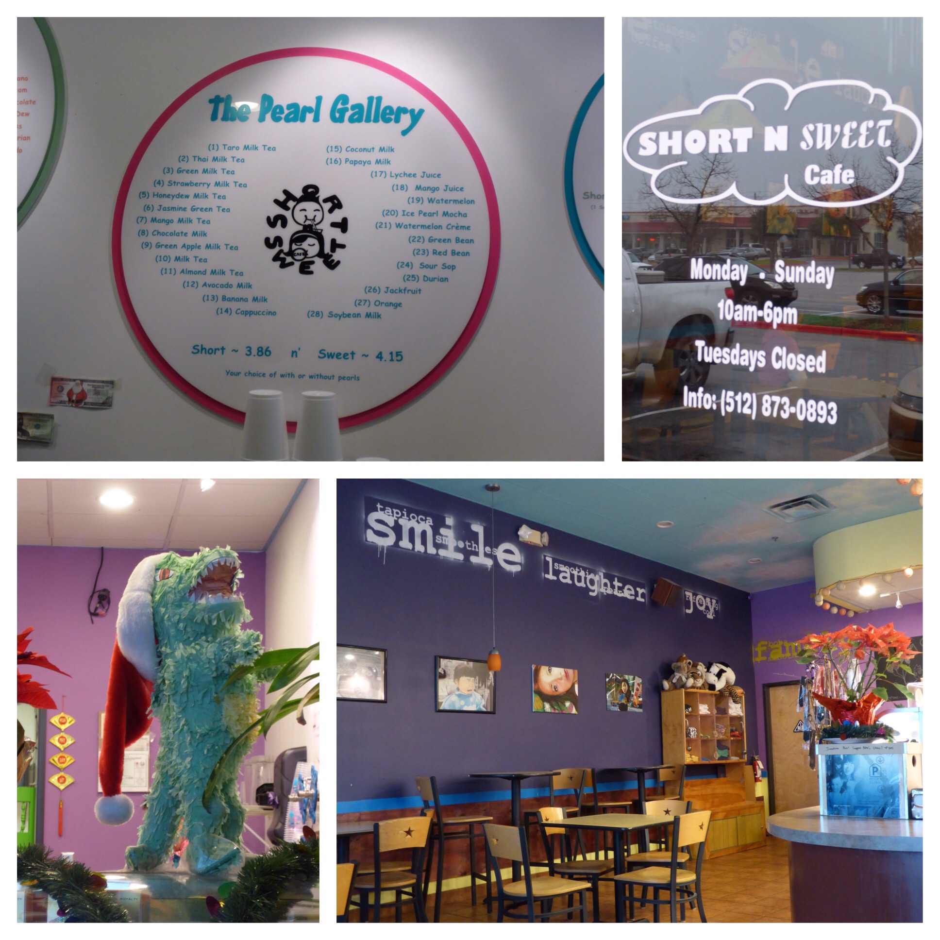 What to do on a rainy day in Austin? How about some Bubble Tea? Short N Sweet Cafe is a good place to chill and get your Bubble Tea on. They have three sizes of drinks, Short, Sweet, and Big Boy. I typically order the almond milk tea with pearls, but as you can see they have plenty of choices. Yay, Bubble Tea!