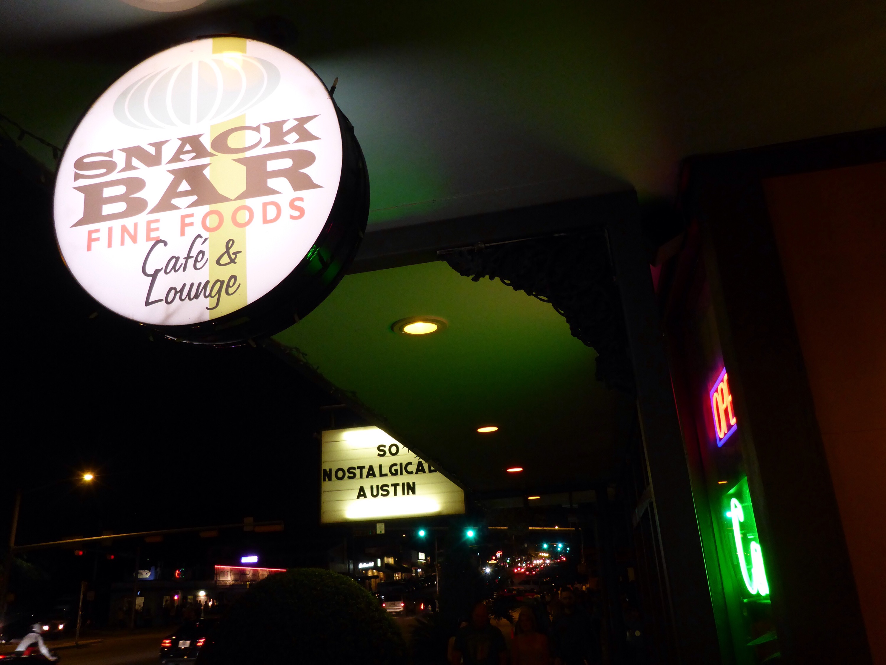 Dinner tonight was at Snack Bar on South Congress. I sat out on the patio so I could watch some of the HONK! TX bands perform – lucky me. My selections were the Black Bean Dip, Caesar Salad, and the Hibiscus Mint Iced Tea. Everything was great.