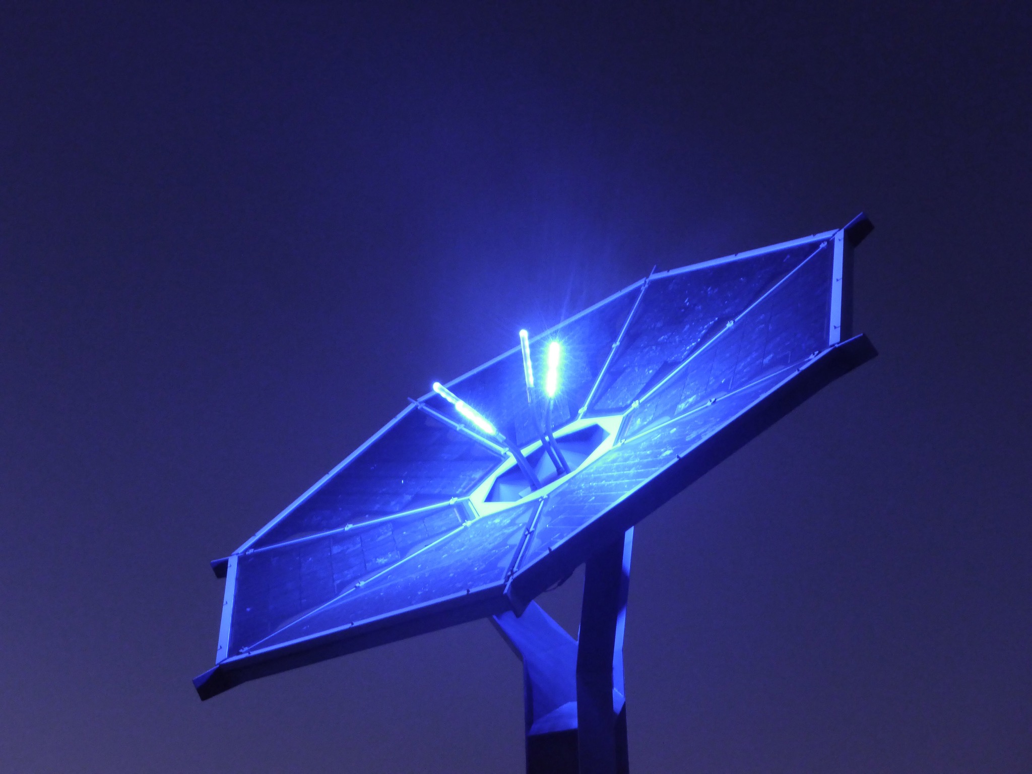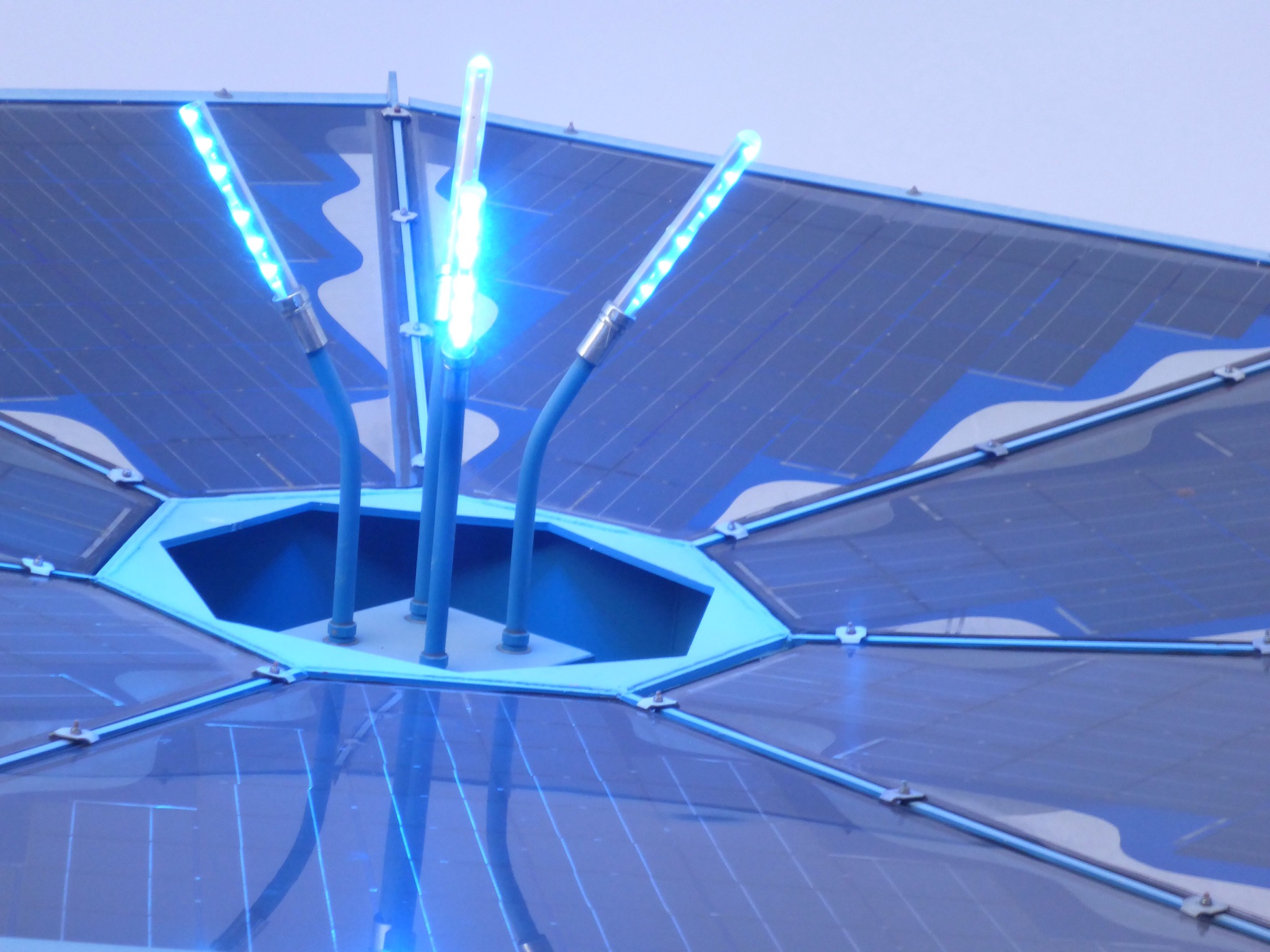 There is an Electric Garden in Austin with fifteen solar collecting Sunflowers. The solar photovoltaic panels collect energy throughout the day and provide a unique display of art. At night, the stems light up and use a portion of the energy collected to make the Electric Sunflower Garden look really cool.