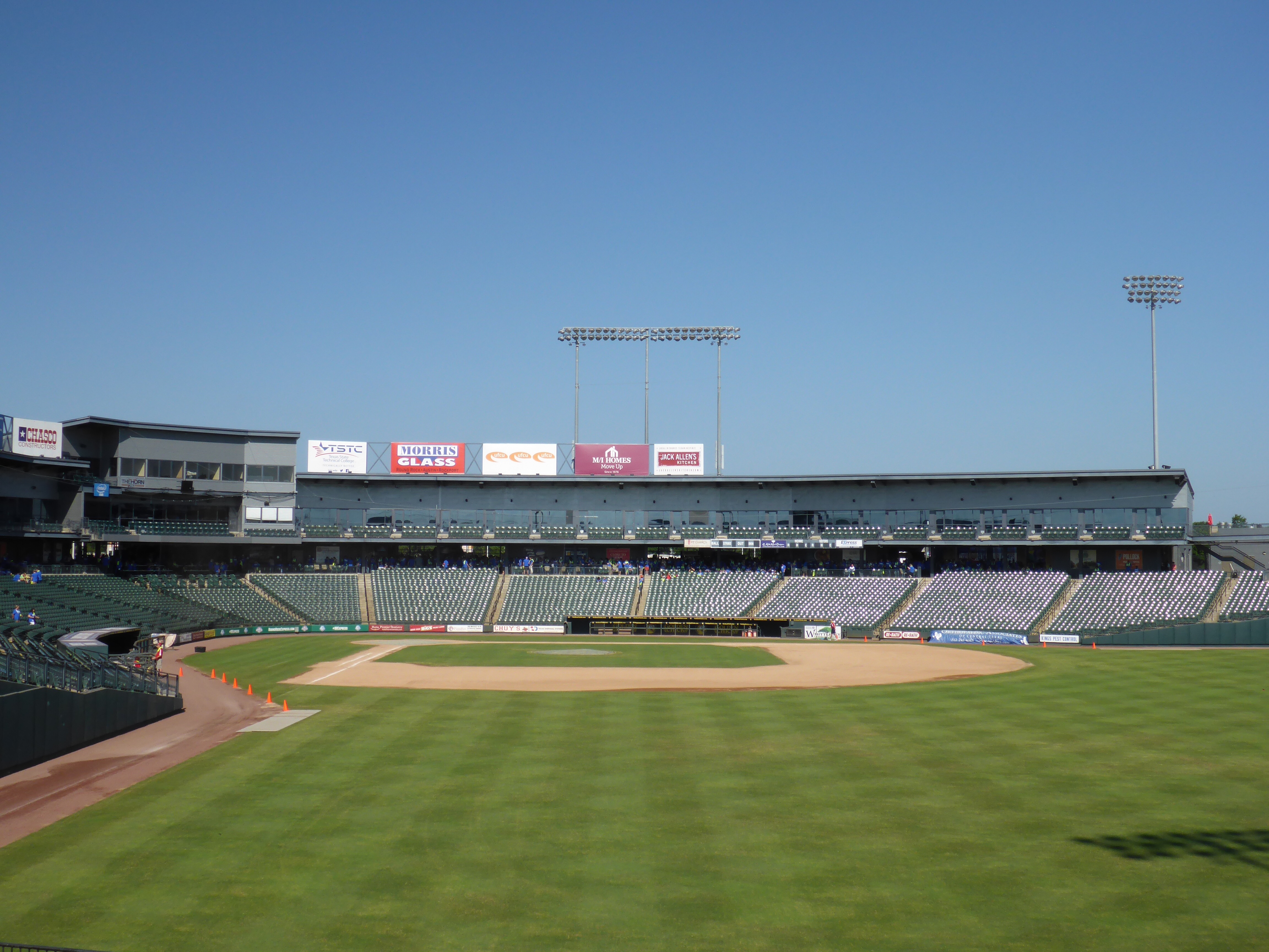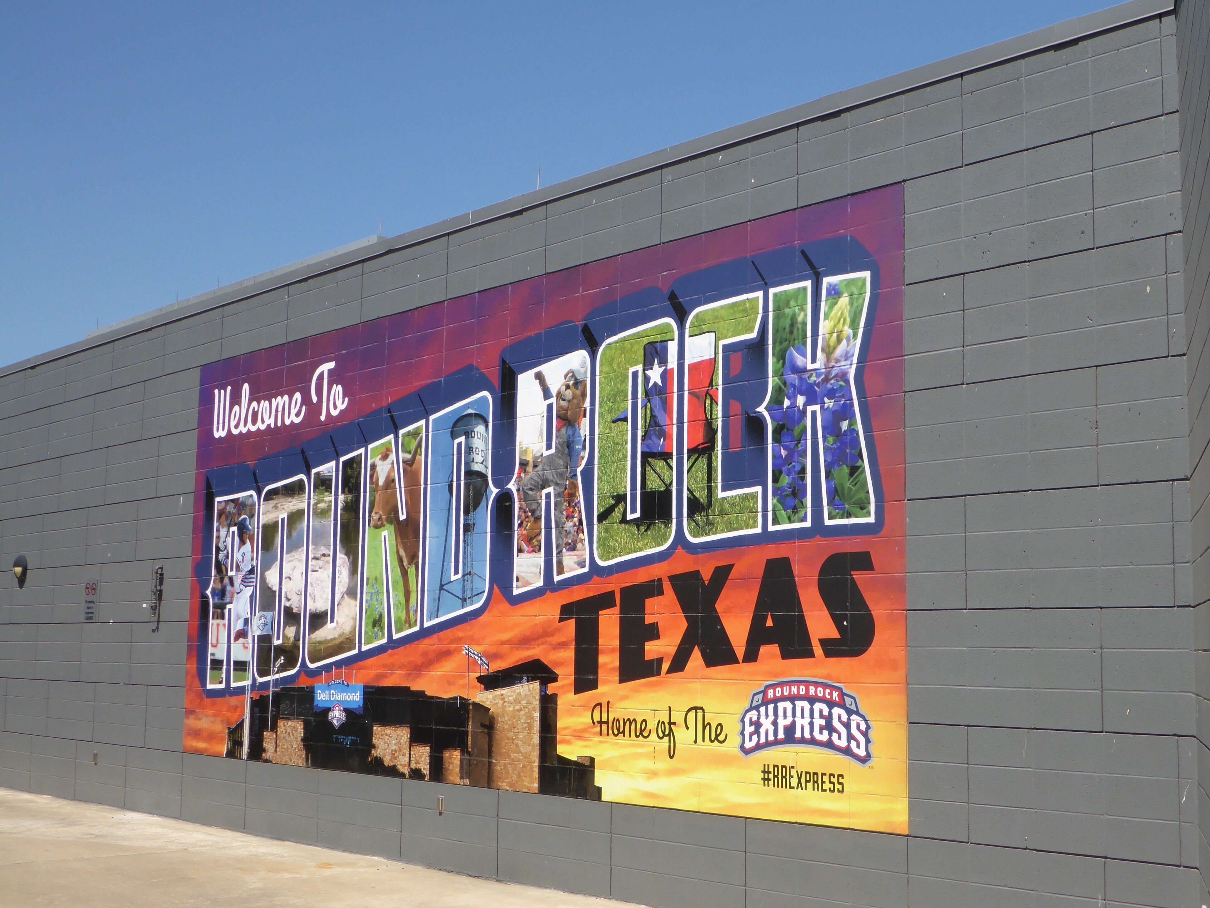 Goofing off at Dell Diamond today in the Summer heat. This baseball park is so cool that it has its own swimming pool in the outfield.