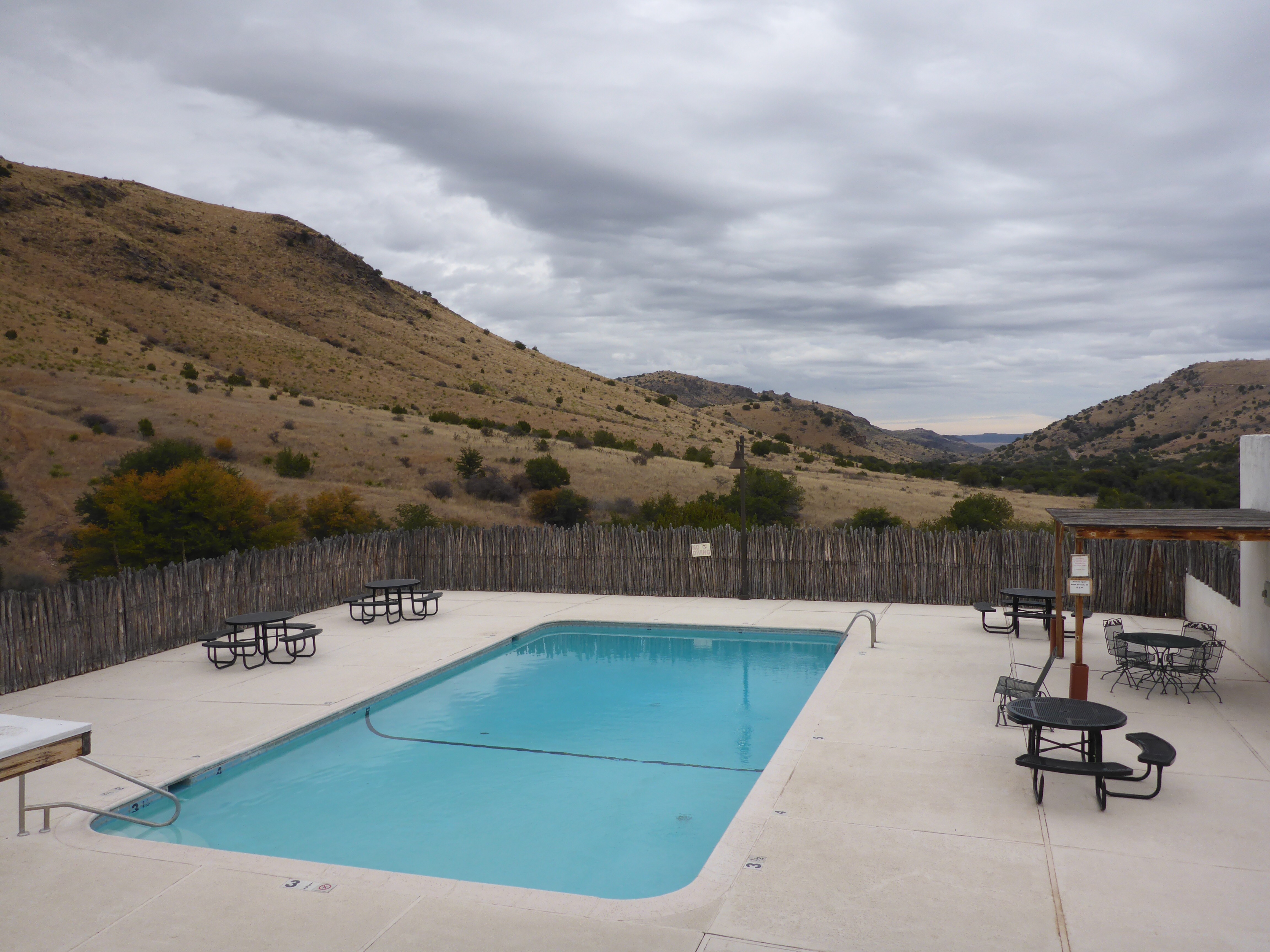 The Davis Mountains State Park is a pretty park located just outside Fort Davis, Texas. There are some scenic hikes to take and camping spots if you wish to camp. There is a hotel in the park called Indian Lodge that has 39 rooms, a restaurant, and a swimming pool. As you can see, it has some nice views of the valley in the park.