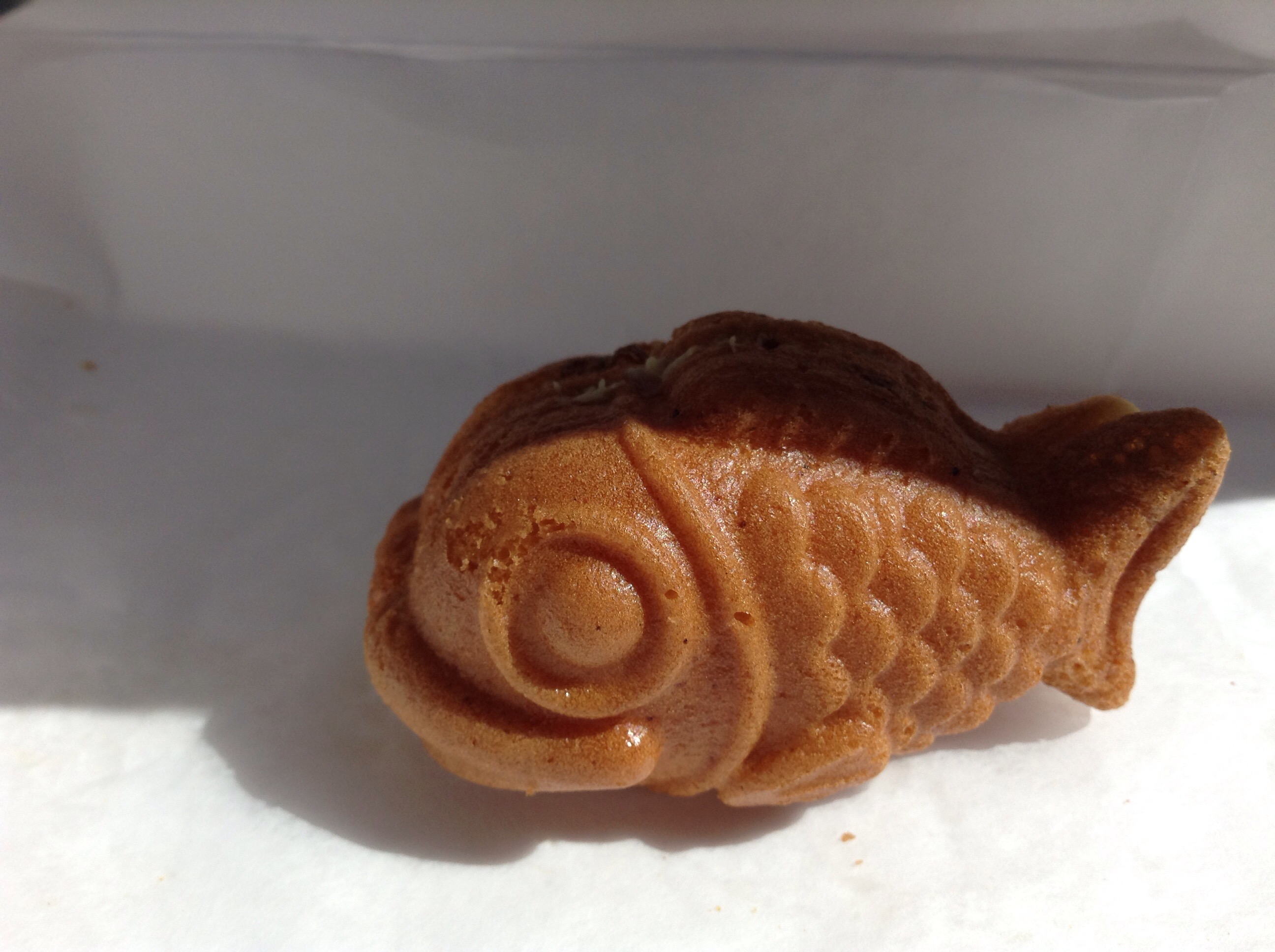 What the heck is Taiyaki, and where has it been hiding all my life? I discovered it today in the Teapioca Avenue kiosk located in the Hana World Market. Taiyaki is a fish-shaped pastry with filling inside.
