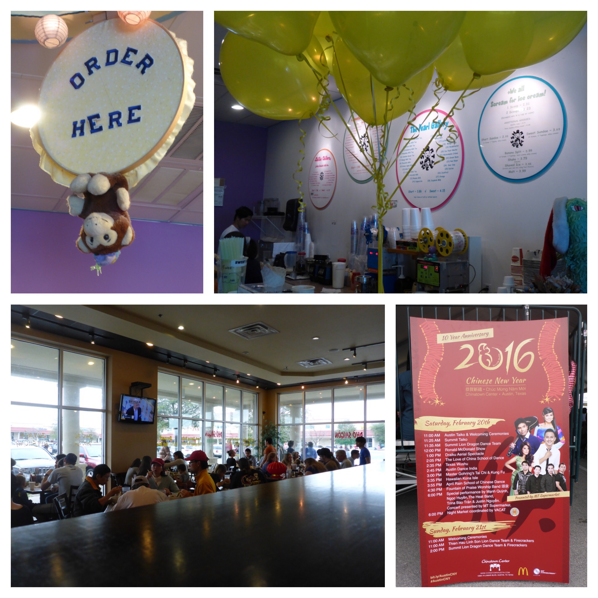 The Chinese New Year Celebration in Chinatown Center was fun. My favorite performance was Draiku Aerial. They were mesmerizing. I also took the opportunity to walk around and stop in at two of my favorite places – Pho Saigon for steamed rice with charbroiled sliced pork, and Short and Sweet for Thai iced tea with pearls.
