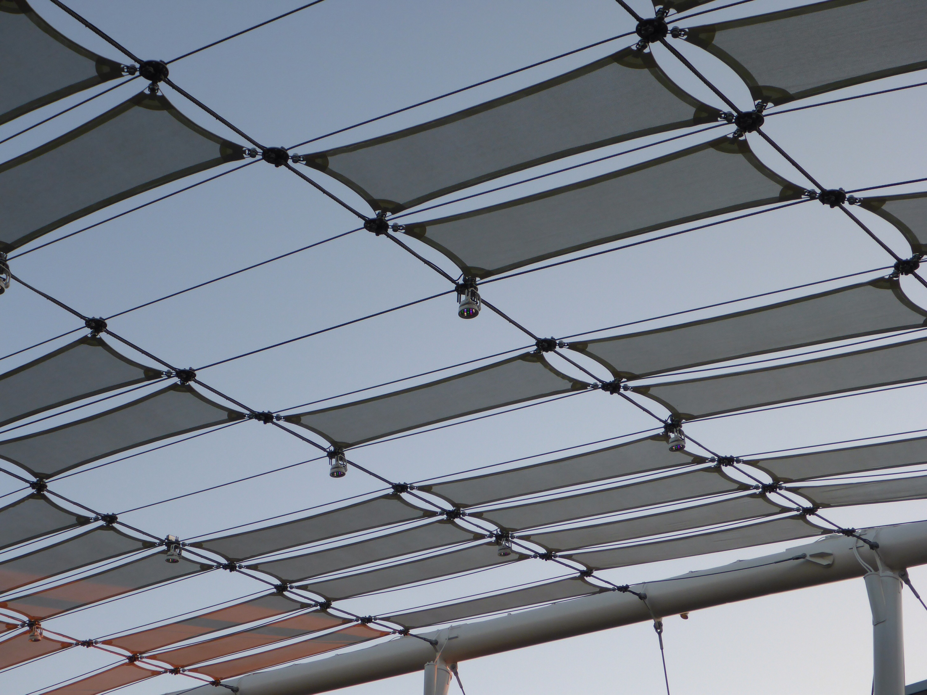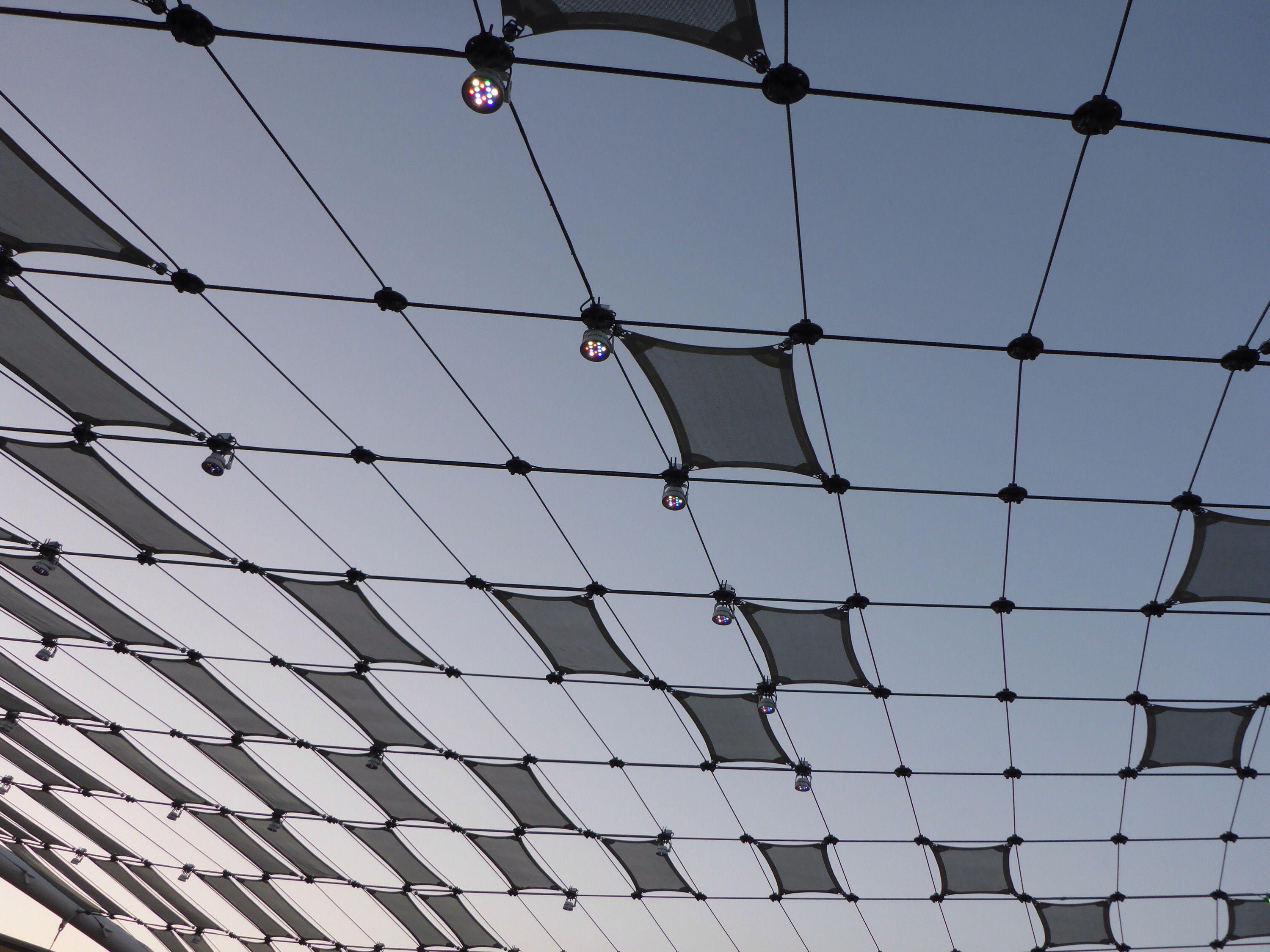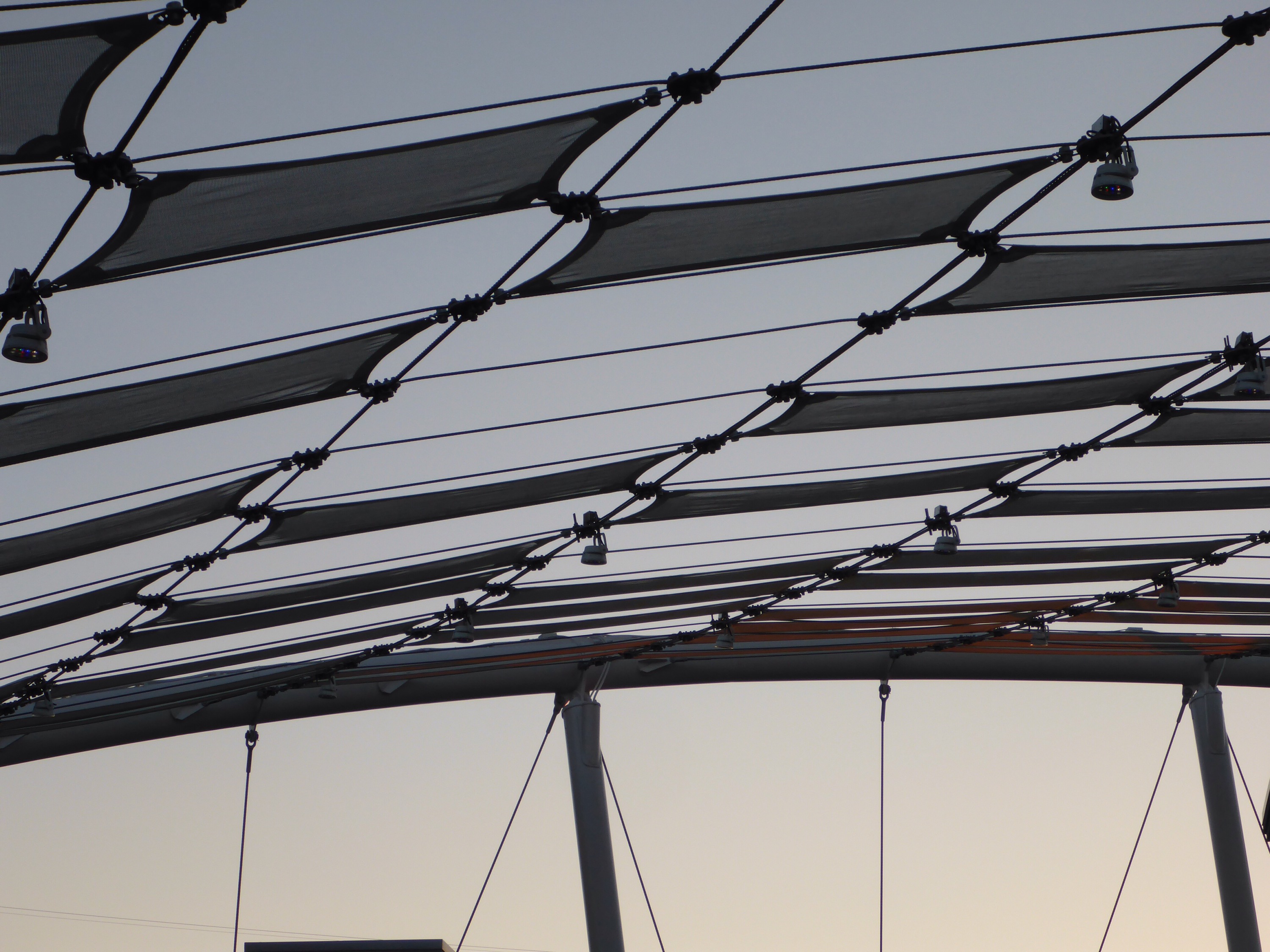 I was back at the Domain again today to get a salad for a late lunch at Whole Foods, try out a new coffee shop at Bee Cave Coffee, enjoy some live music on “The Great Lawn”, and then join a friend to watch some of the UFC fights. The canopy structure covering the Lawn is super interesting to me. I walked around like a geek and took several photos as the sun set over the area. Now you know what to expect, should you ever visit for shopping, food and beverage, or some music.