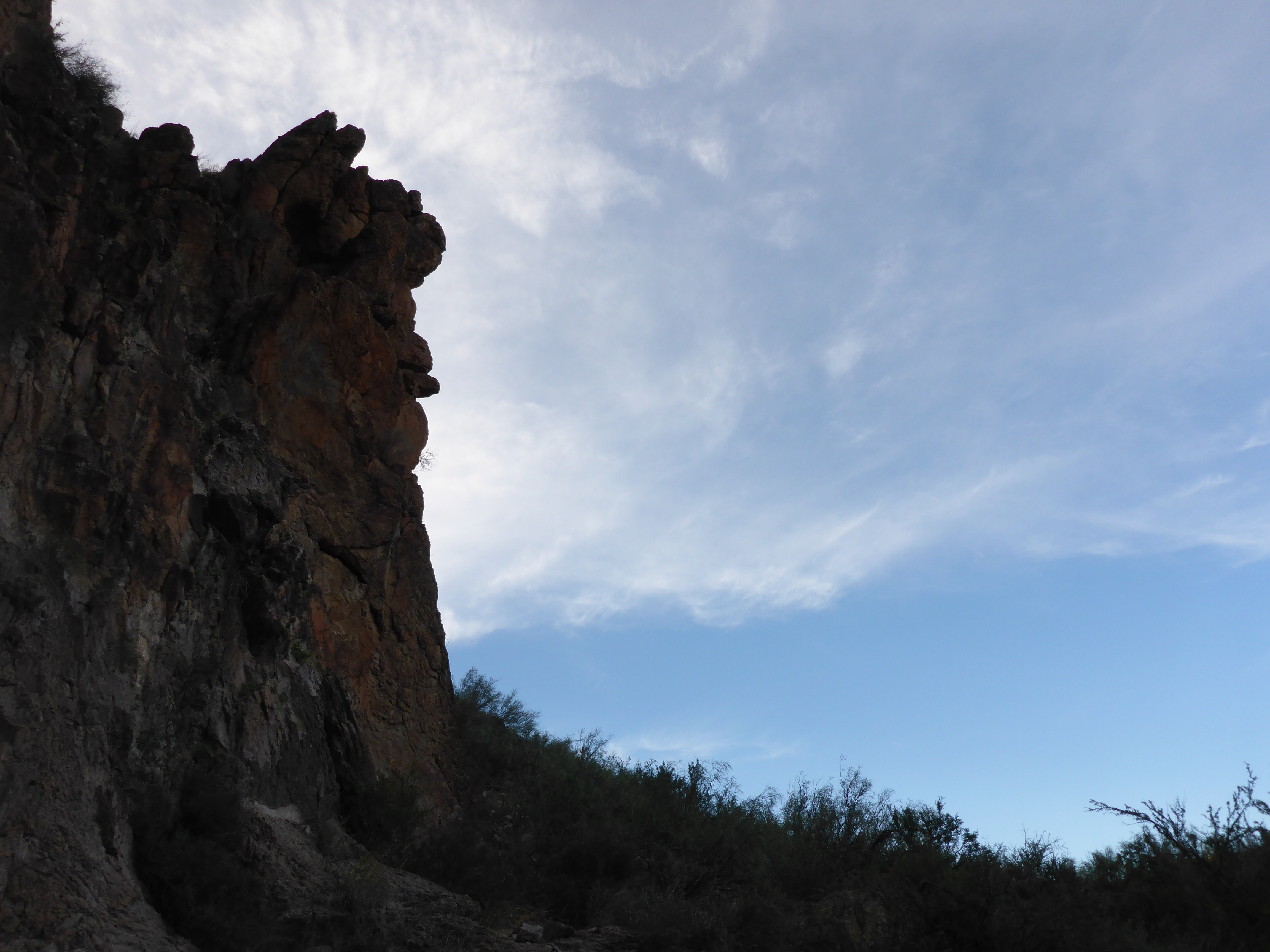 Closed Canyon is a slot canyon located in the Big Bend Ranch State Park. The trailhead is just off of Farm to Market Road 170, and the hike is about 1.4 miles long round trip. It is a beautiful place. According to the brochure, “Mountain lion, javelina, rock squirrels and a variety of lizard and snake species including the greater earless lizard, desert spiny lizards and the western diamondback rattlesnake may be seen in or near the canyon.” Lucky for me, I had the Canyon all to myself.