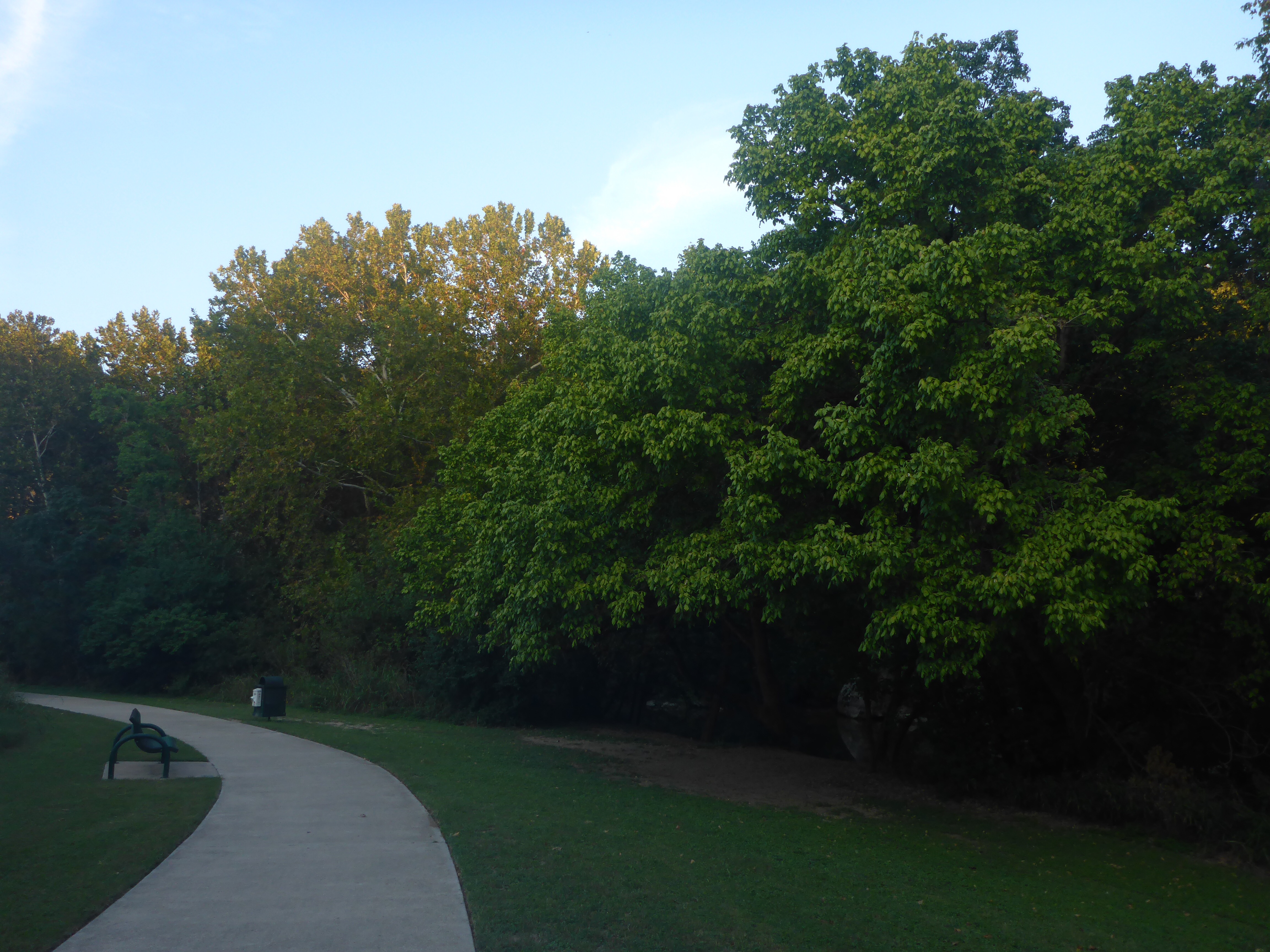 The temperature hit just above 90 degrees Fahrenheit in Central Texas today, so I opted for a late evening walk with hopes of less heat on the path. I started off from Rivery Park in Georgetown, which you can see from the trail map photo is located in the middle of the Georgetown trail system. It turned out to be a nice walk along the paved trail, with gentle slopes to climb up and down, and some nice views of the San Gabriel River.