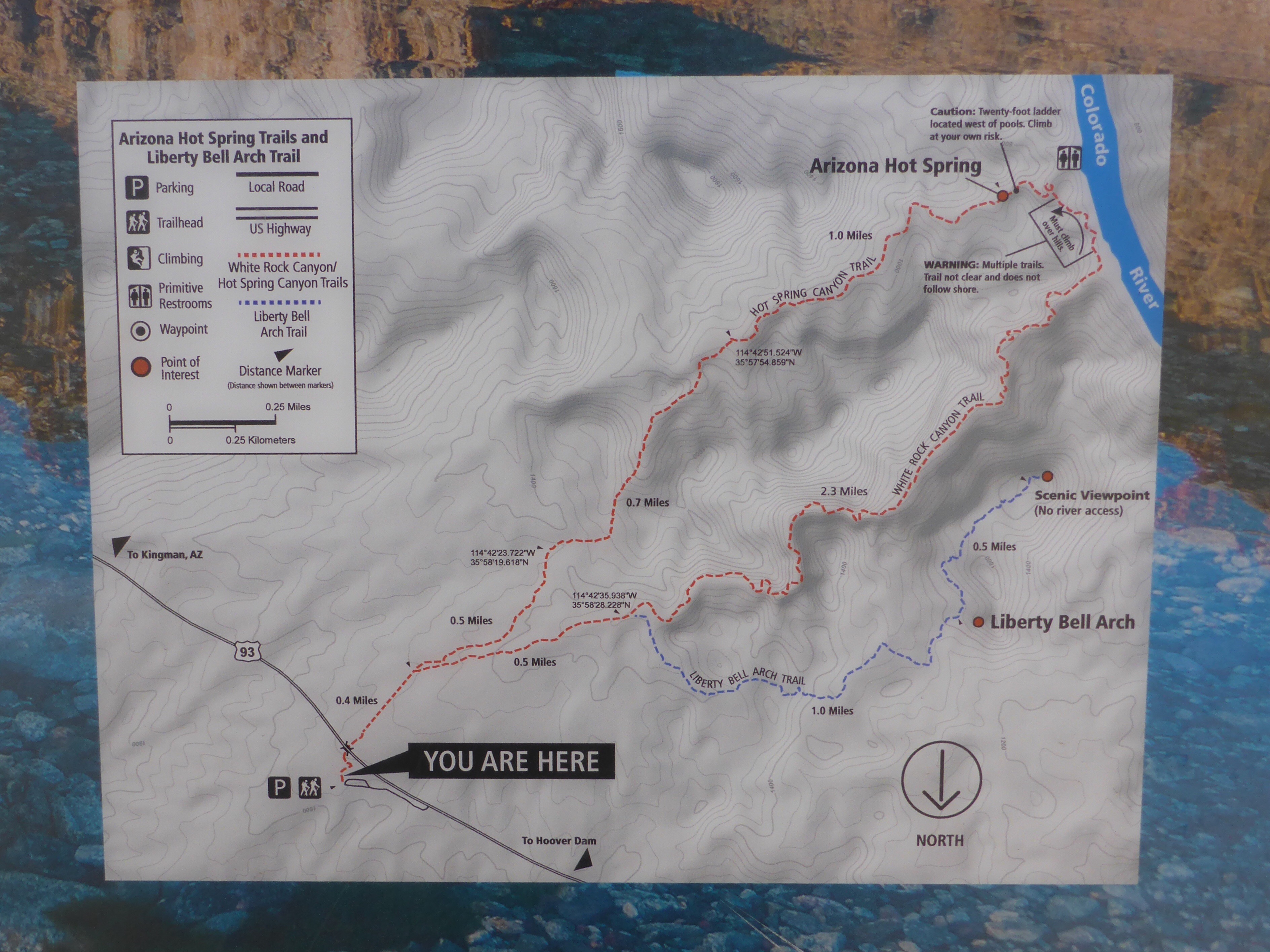 The trail for the Liberty Bell Arch starts just around the 4 mile marker off of Highway 93 in Arizona. There is a nice big parking lot, a slightly misleading trail map, and a bridge to cross under to start your hike. What they don’t tell you is that there are several different trails out there, and if you are not careful, you can end up on the wrong one even if you follow the signs. I ended up on the wrong trail that led me for a long, but beautiful, loop through the desert. All the while getting further and further from the bridge with pretty looks back towards my jumping off point.