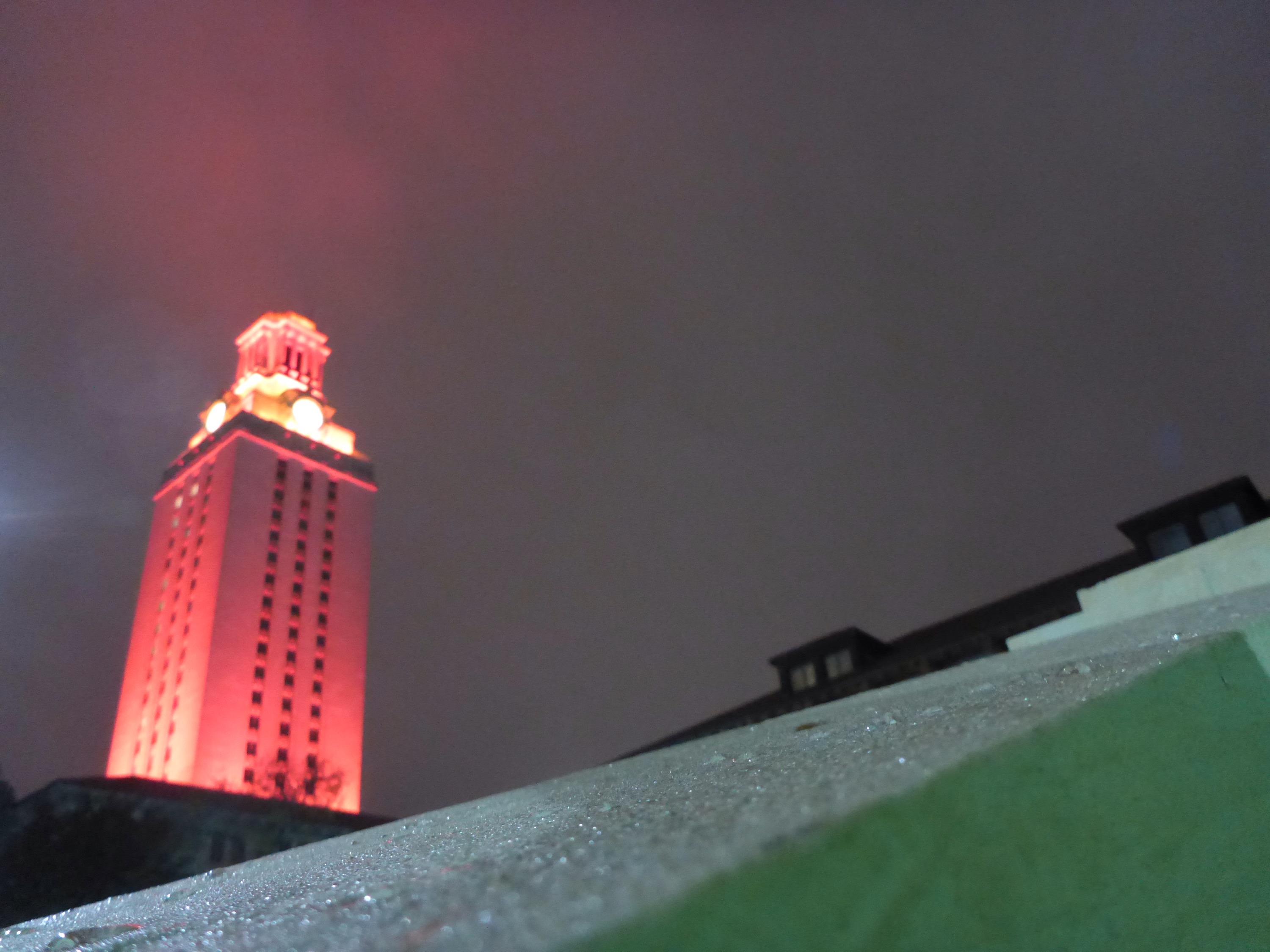 The Biology Turtle Pond on campus was a nice place to get some photos of the Texas Tower on this cold, drizzly night. The Tower was lit up in Burnt Orange in honor of the Texas Women’s Volleyball Team winning the Big 12 Championship. Yay! I took the opportunity to walk around campus with my camera.
