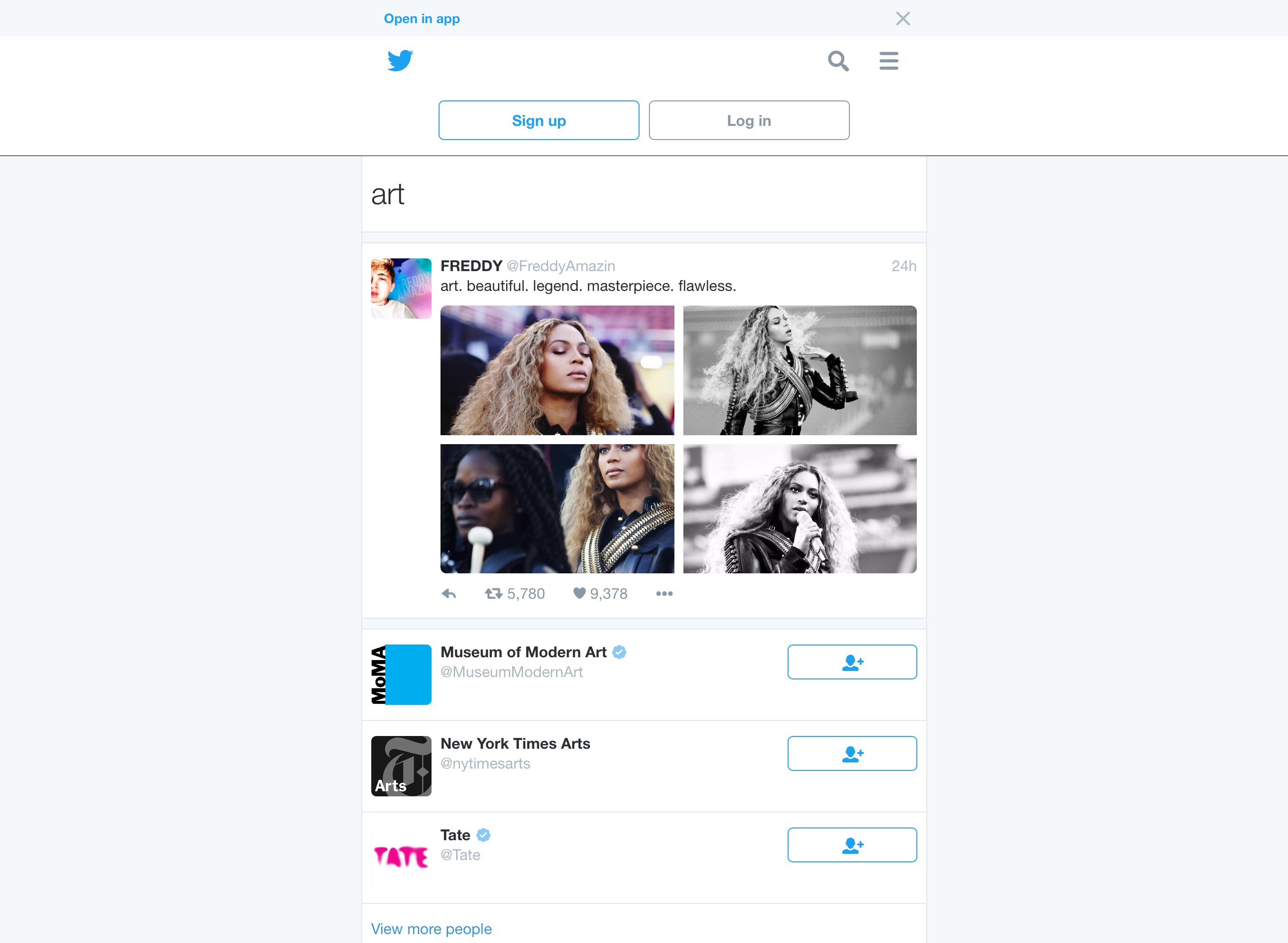 Before you do anything, make sure you know the account name and password for your Twitter account so you can successfully log back in. If you are totally sure that you’ve got this, then log out of Twitter on the web browser of your choice. What you will discover is something that might be more entertaining than your usual Twitter feed. The Twitter people have recently made this happen. You will get a view of the newest and most popular tweets. You can also search for key words or hash tags. For example, if you are interested in art, just type it in and search. More fun than when you were logged in as yourself? Probably so – but you can only have so much fun in one day, so log back into Twitter and check out your normal feed before bedtime. 🙂