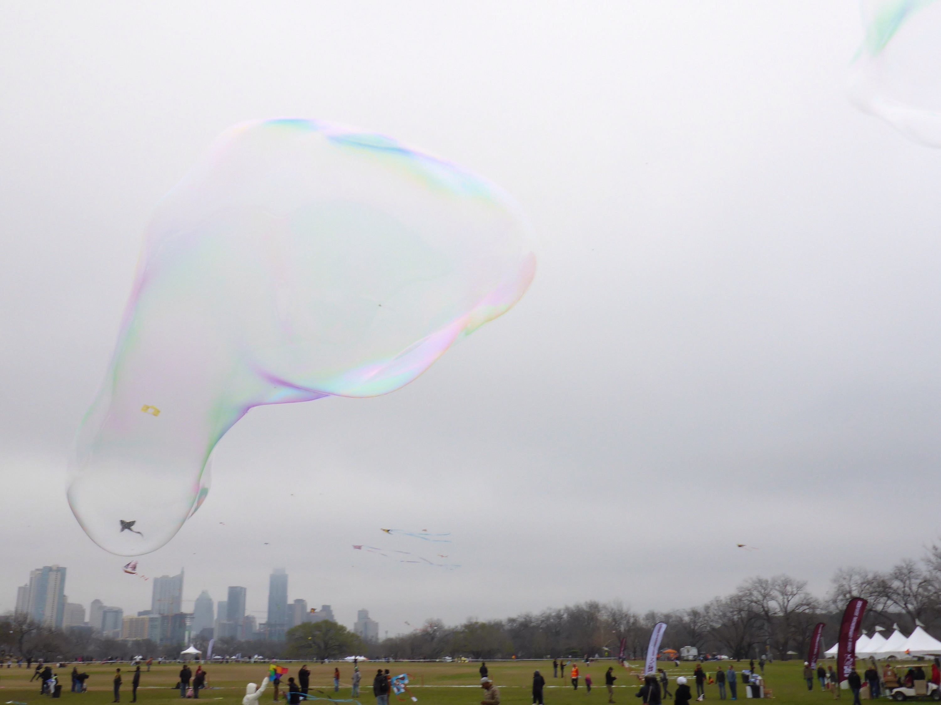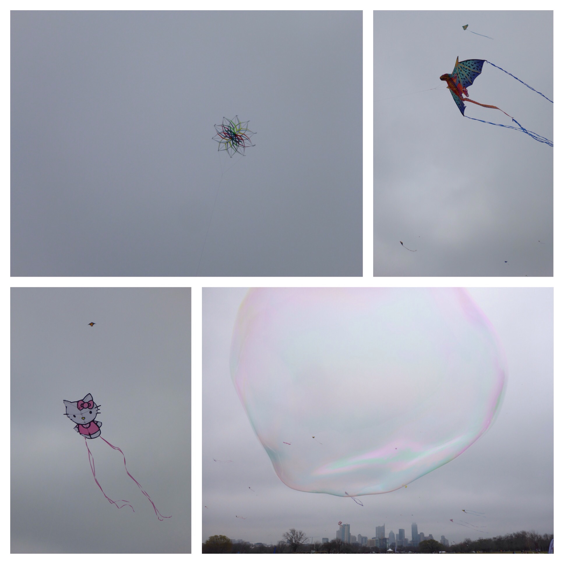 The Zilker Kite Festival was weather challenged today. It was still fun to catch the kites, bubbles, people, dogs, and food trailers at Zilker Park. Let’s hope next year is sunny and a bit warmer.